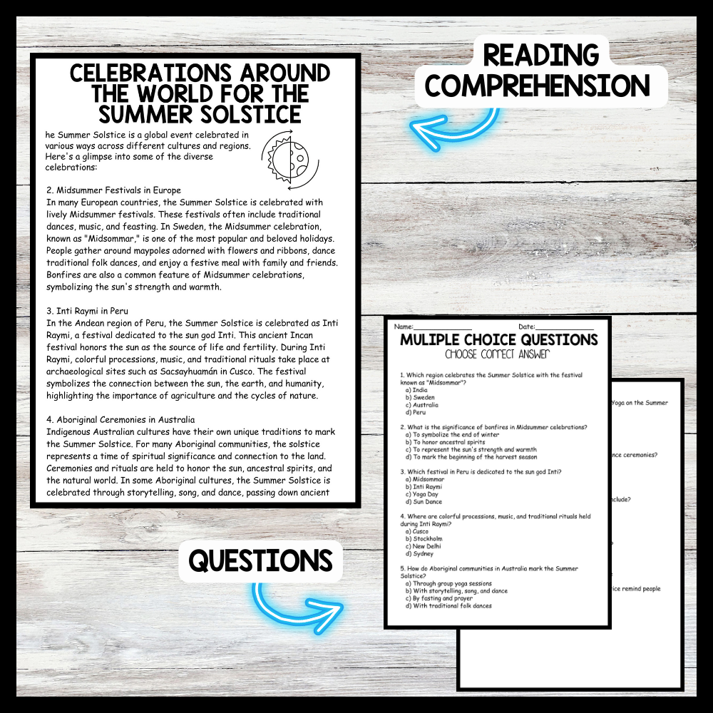 Grow your students knowledge with this Nonfiction Reading Comprehension Passage - Summer Solstice - Around the World