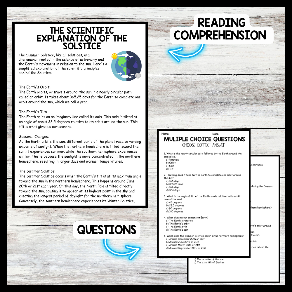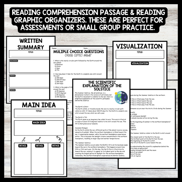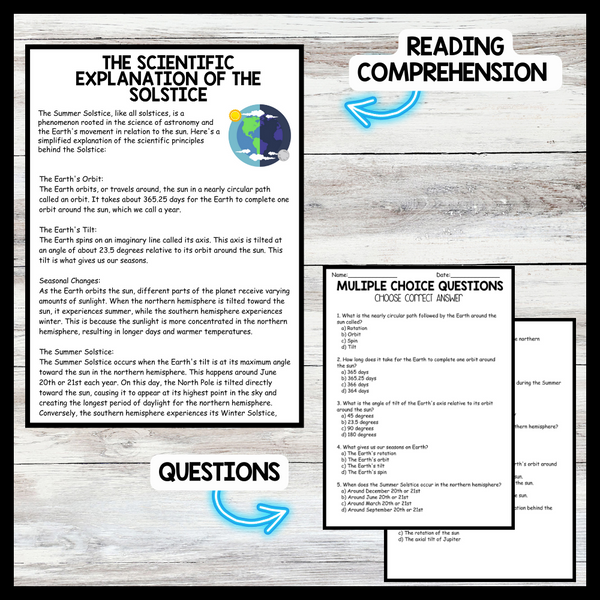 Grow your students knowledge with this Nonfiction Reading Comprehension Passage - Summer Solstice - Scientific Explanation These reading practice passages are perfect for: warm-up, bell work, homework, or weekly assessments. Students can use independently in literacy groups, guided reading groups....View more