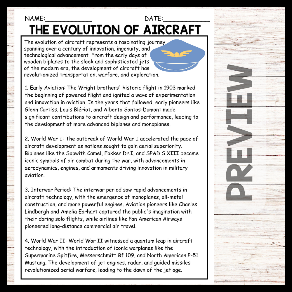 - "THE EVOLUTION OF AIRCRAFT" AVIATION DAY Reading Comprehension
