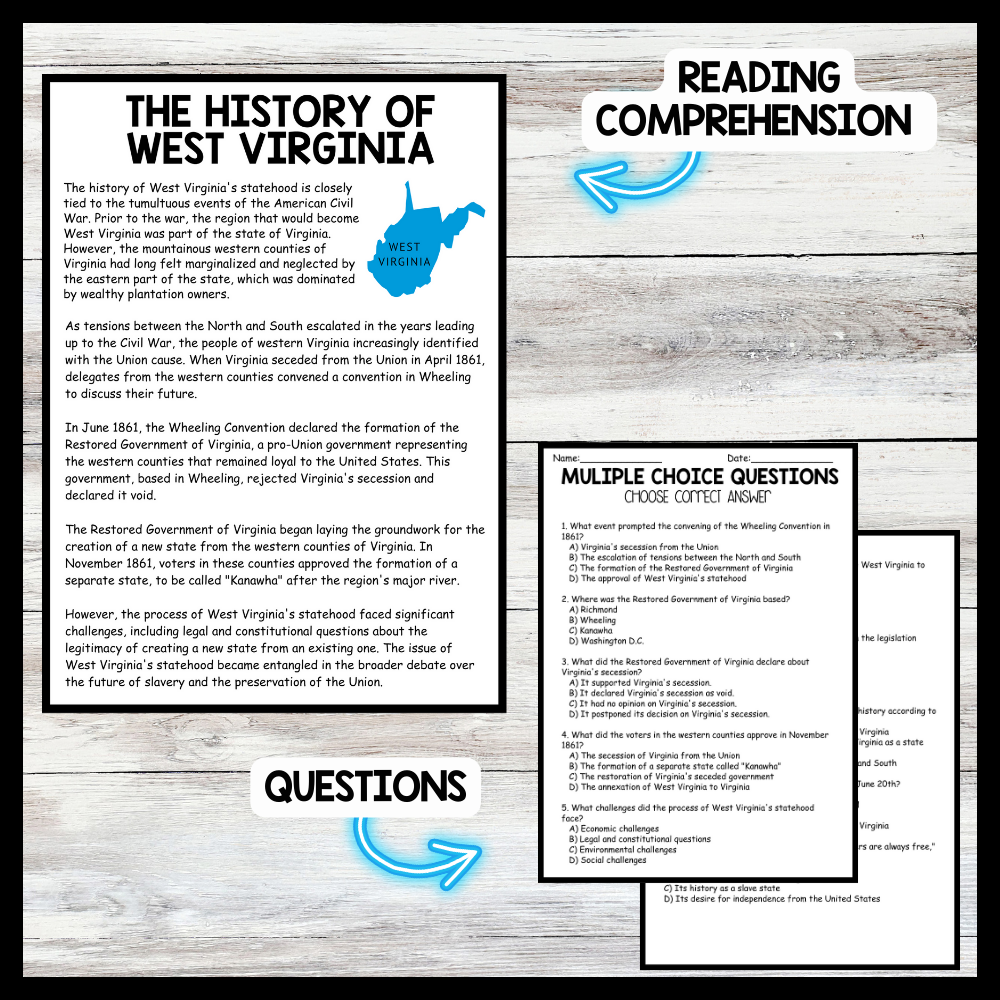 Grow your students knowledge with this Nonfiction Reading Comprehension Passage - West Virginia Day - History