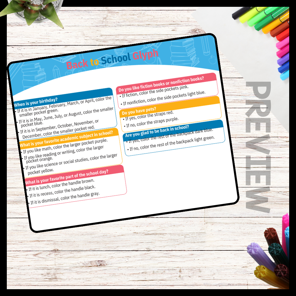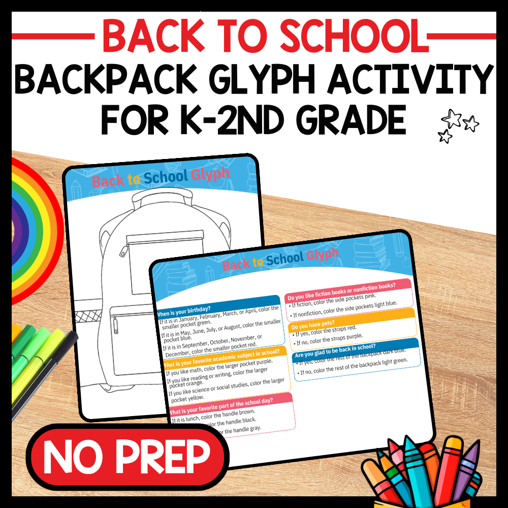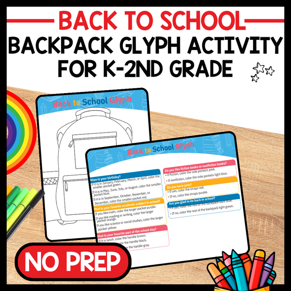 - Back to School Backpack Glyph Activity for K-2nd Grade