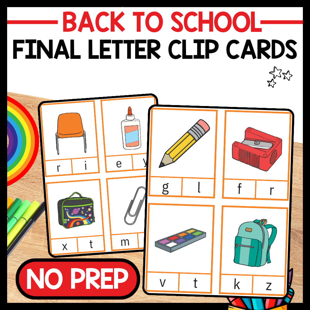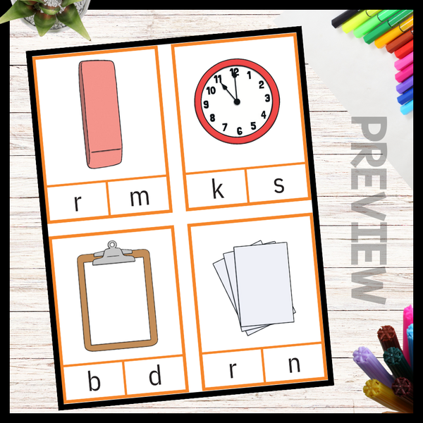 Set up an engaging literacy center with our Back to School Clip Card Activity. Students will use clothespins to identify the correct ending sound for each illustration. This activity is perfect for the beginning of the school year to enhance fine motor skills and reinforce letter sounds.