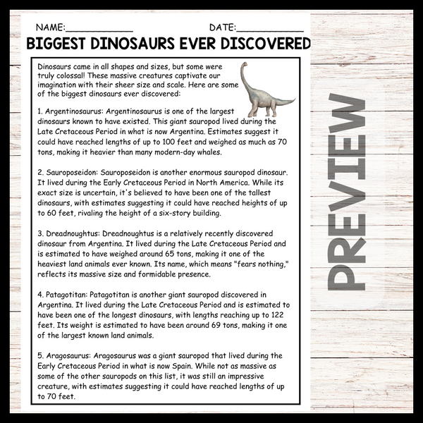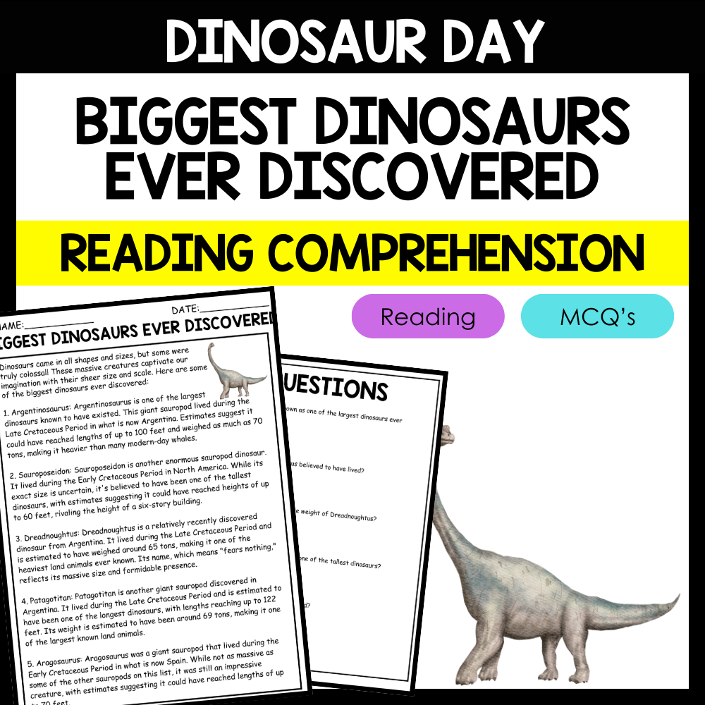 - "BIGGEST DINOSAURS EVER DISCOVERED" DINOSAUR DAY Reading Comprehension