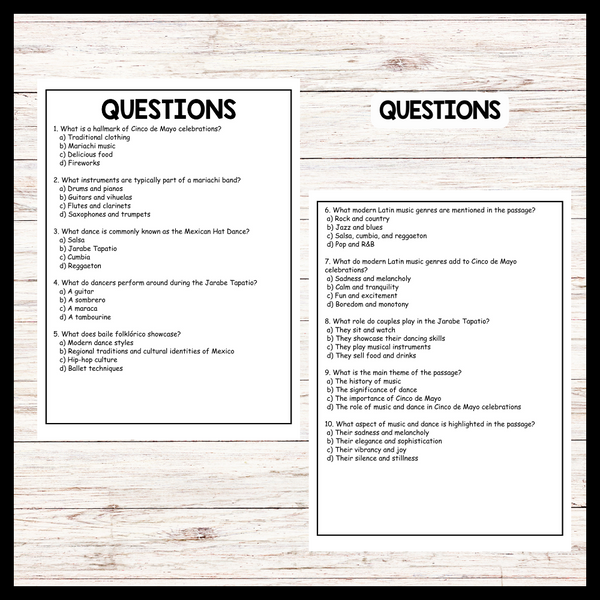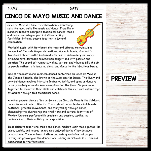 - "CINCO DE MAYO MUSIC AND DANCE" CINCO DE MAYO Reading Comprehension