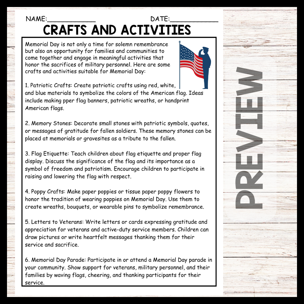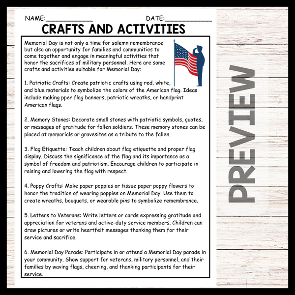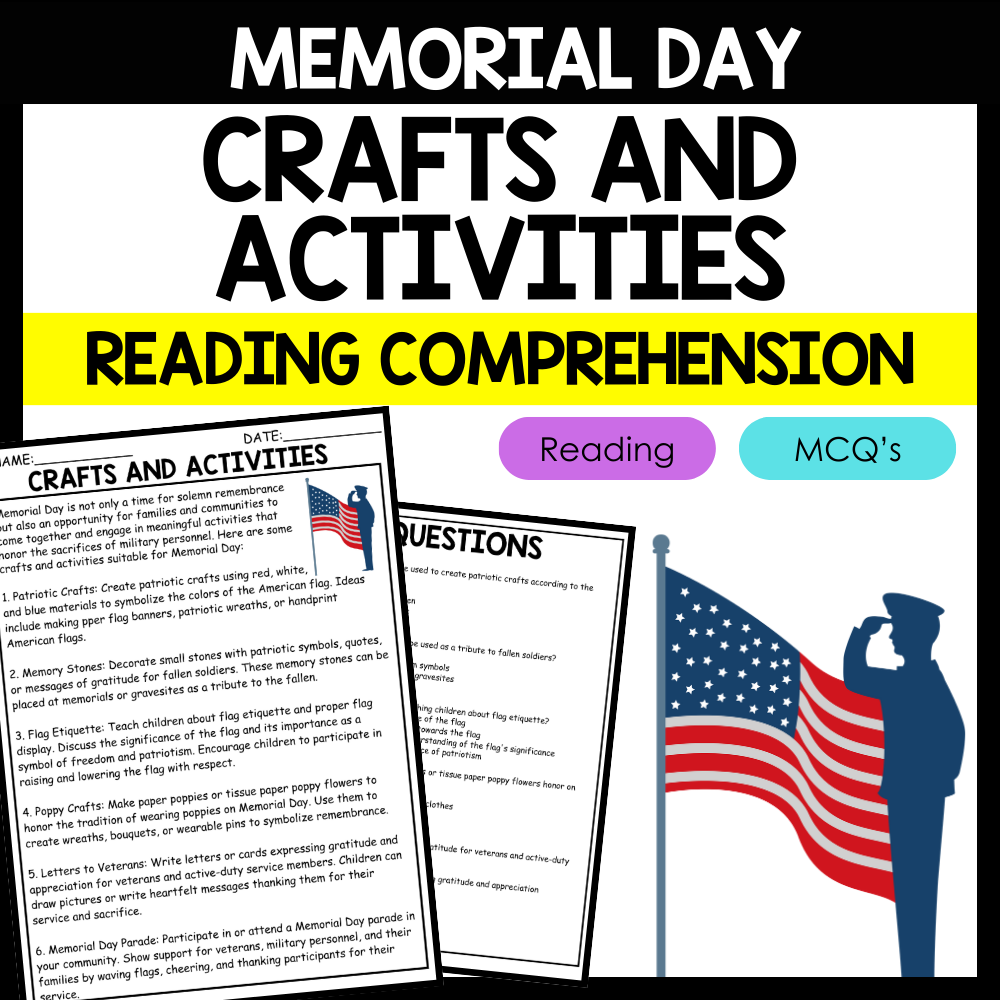 - "CRAFTS AND ACTIVITIES" MEMORIAL DAY Reading Comprehension