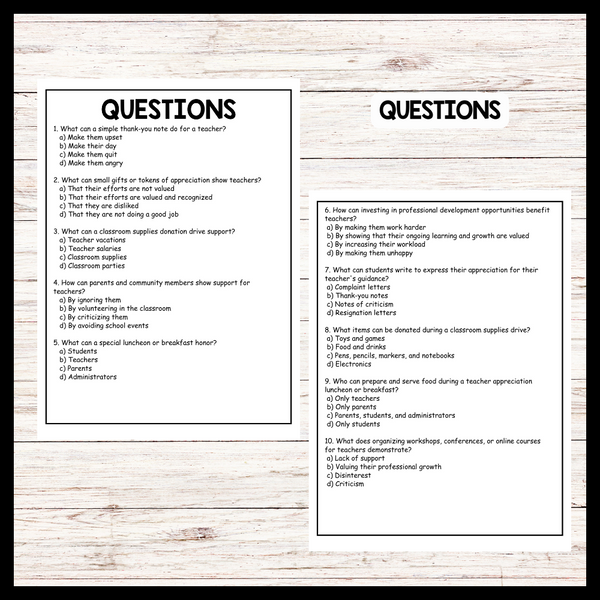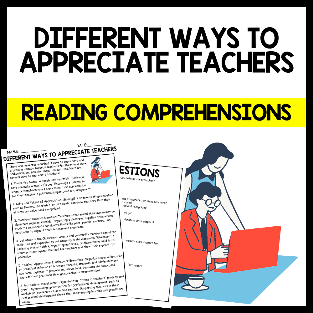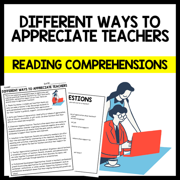 - "DIFFERENT WAYS TO APPRECIATE TEACHERS" Teacher Day Reading Comprehension