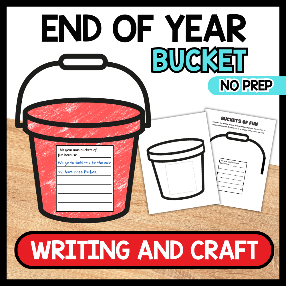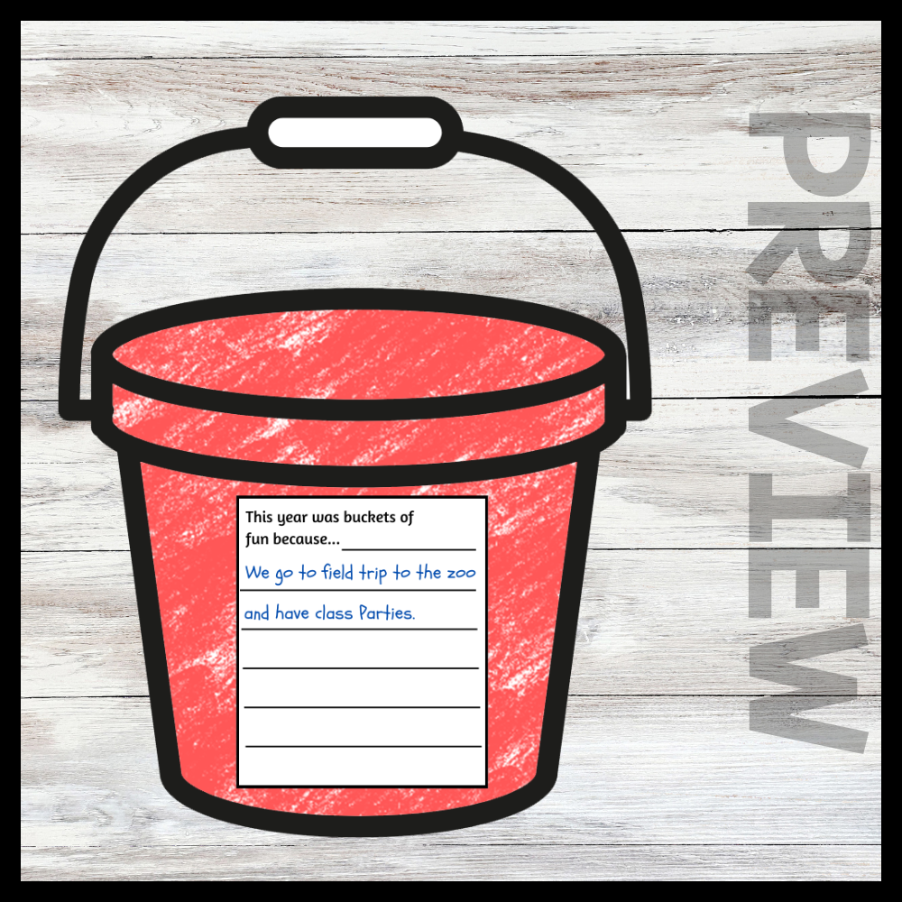 Beneath the bucket template, you’ll find a thought-provoking writing prompt that encourages students to reflect on their school year: