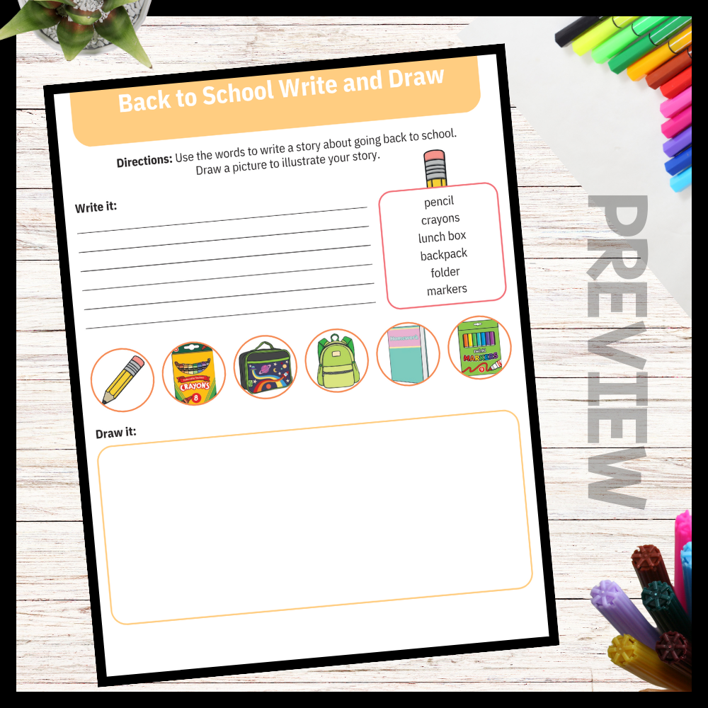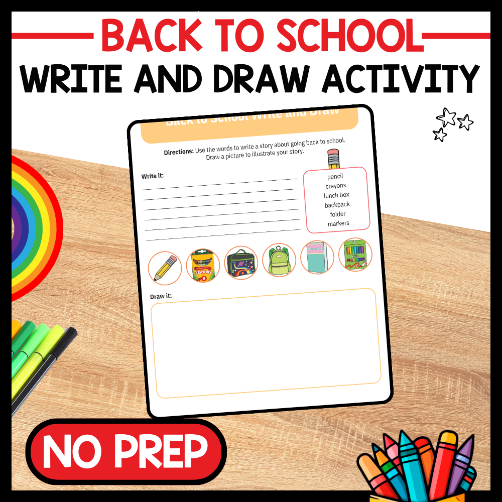 Enhance students' creative writing and vocabulary skills with this engaging First Grade Back to School Write and Draw Activity.
