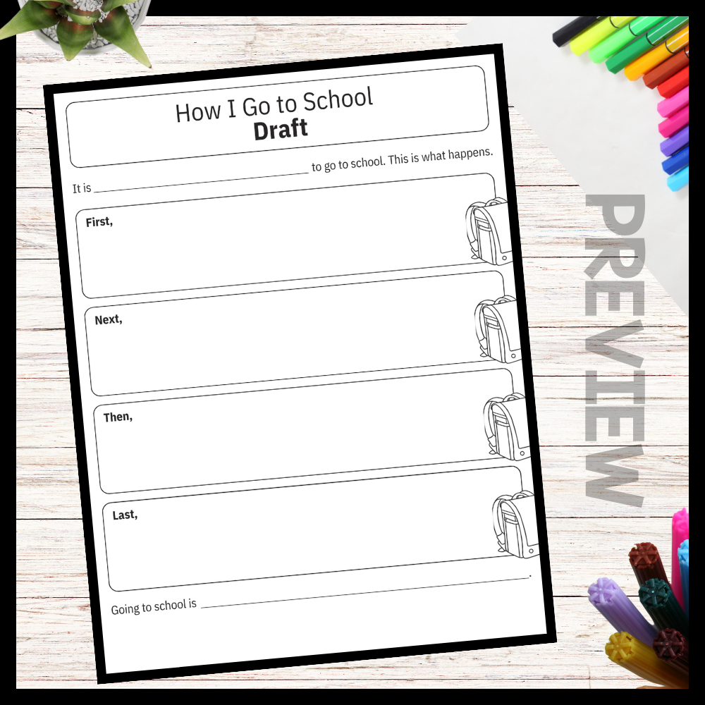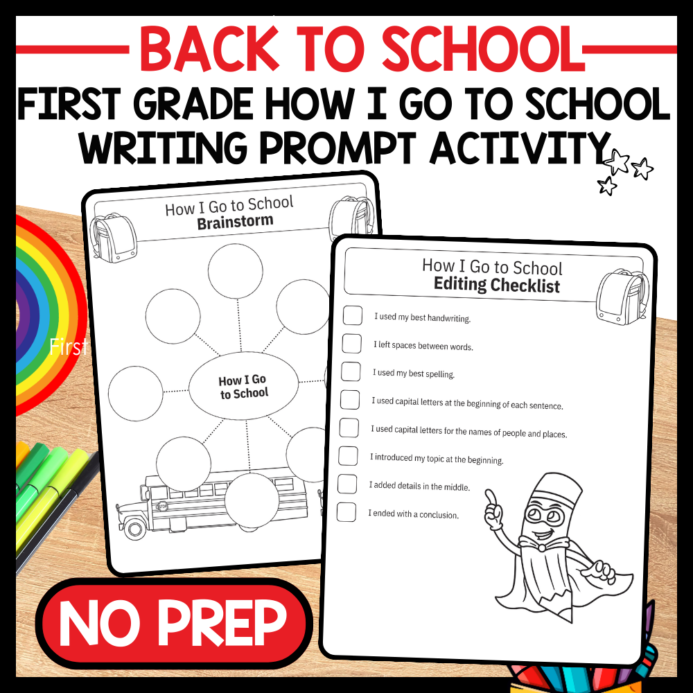 Utilize this First Grade How I Travel to School Writing Prompt Activity to assist your students in mastering the writing process.