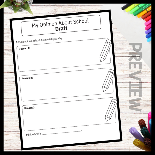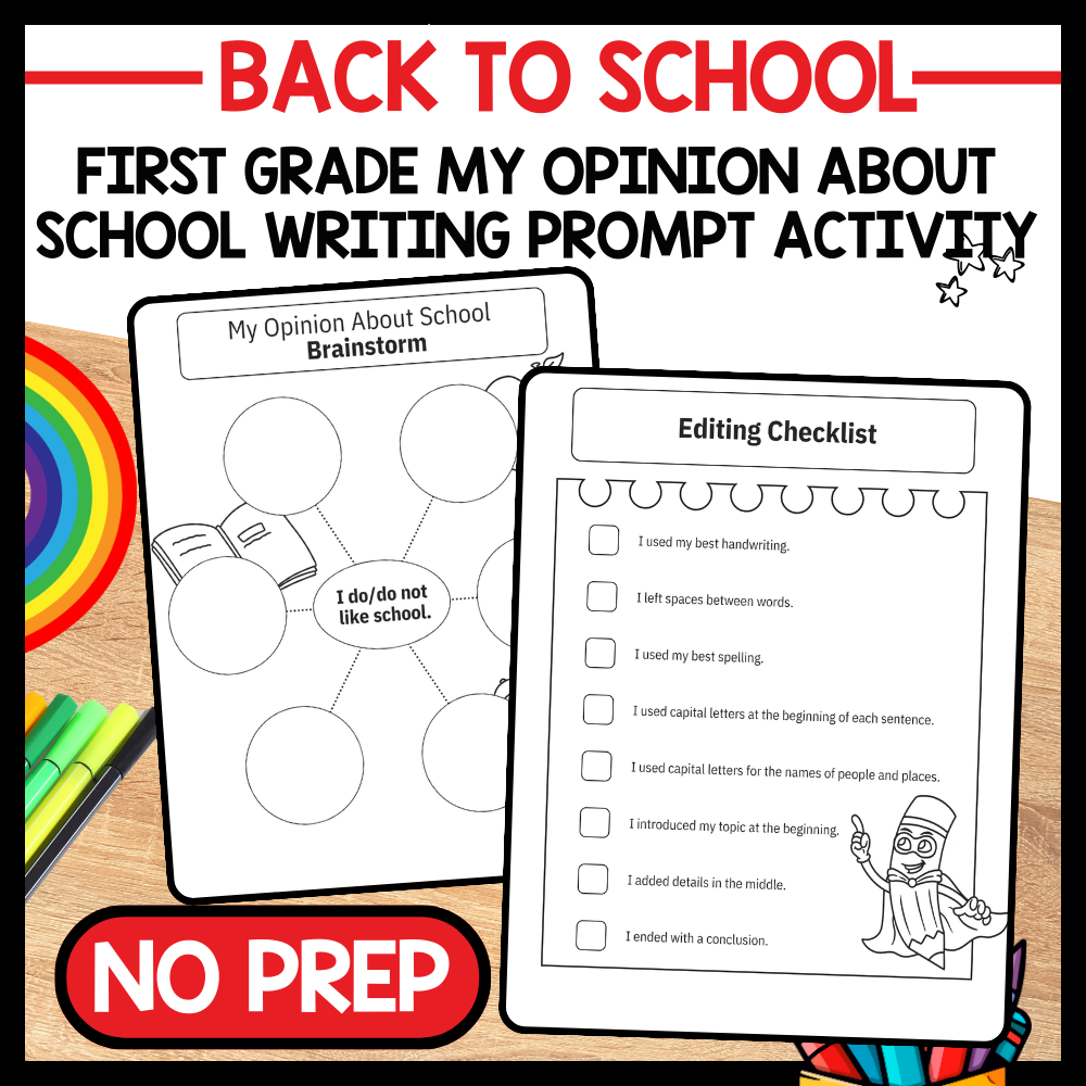Utilize this First Grade My Opinion About School Writing Prompt Activity to support your students in developing their writing skills.