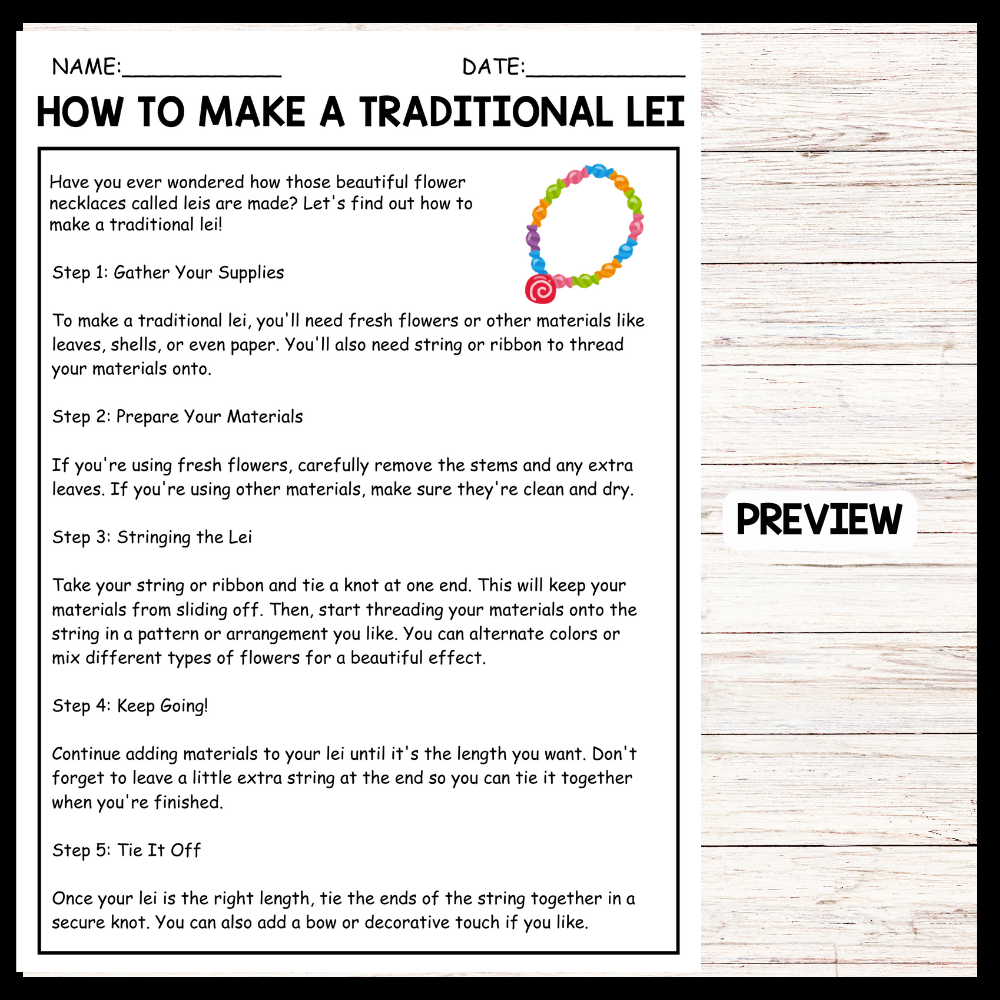 - "HOW TO MAKE A TRADITIONAL LEI" LEI DAY Reading Comprehension
