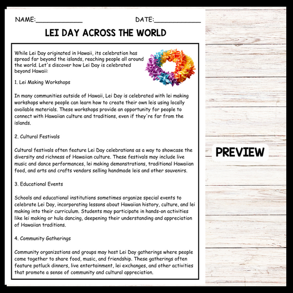 - "LEI DAY ACROSS THE WORLD" LEI DAY Reading Comprehension