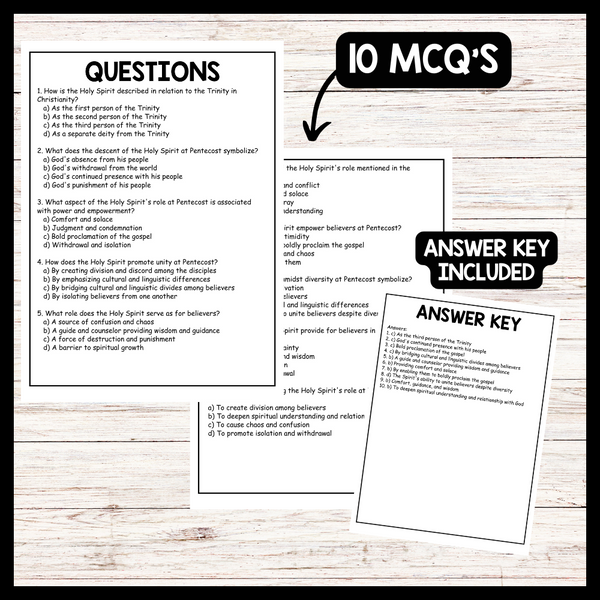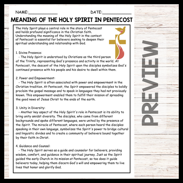 This passage explores the multifaceted role of the Holy Spirit in the Pentecost event and in the lives of Christians. It highlights the divine presence of the Holy Spirit as God's ongoing presence and activity in the world, symbolized by its descent upon the disciples. The Spirit's empowerment of the disciples underscores its association with power and empowerment, enabling them to fulfill their mission of spreading the gospel message. Additionally, the passage emphasizes the Spirit's role in fostering unity amidst diversity, as seen in the miraculous ability of the disciples to communicate across language barriers. Finally, it touches on the Spirit's function as a guide and counselor for believers, providing wisdom and guidance in their spiritual journey. Teachers can use these points to deepen students' understanding of the significance of the Holy Spirit in Pentecost and its continued relevance in the Christian faith today. Through discussions and reflections on the Holy Spirit's role, students can explore themes of divine presence, empowerment, unity, and guidance in their own spiritual lives.