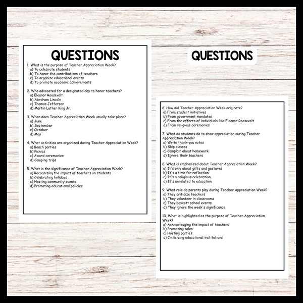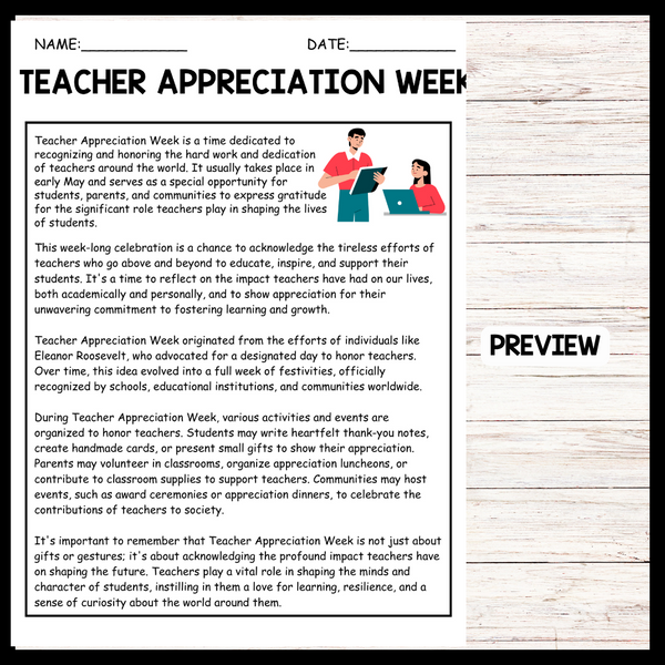 - "TEACHER APPRECIATION WEEK" Teacher Day Reading Comprehension