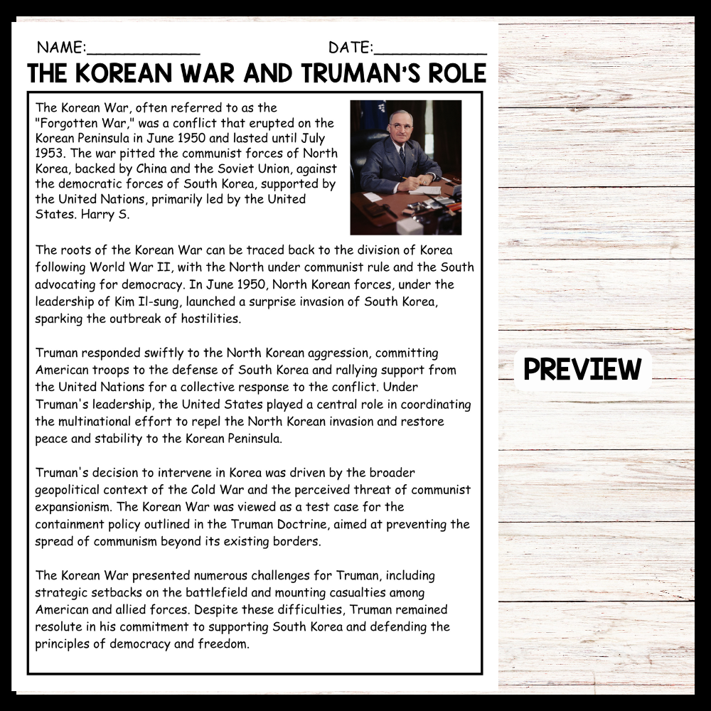 - "THE KOREAN WAR AND TRUMAN’S ROLE" TRUMAN DAY Reading Comprehension