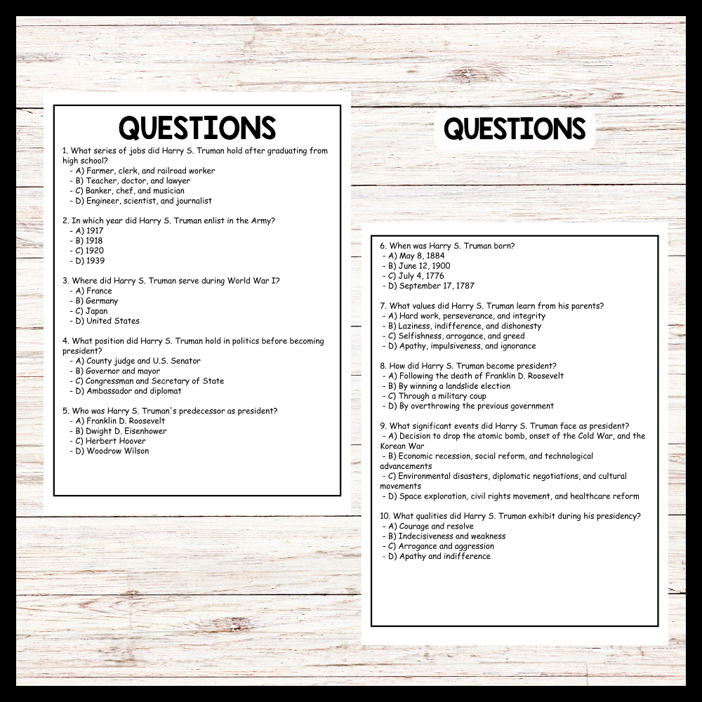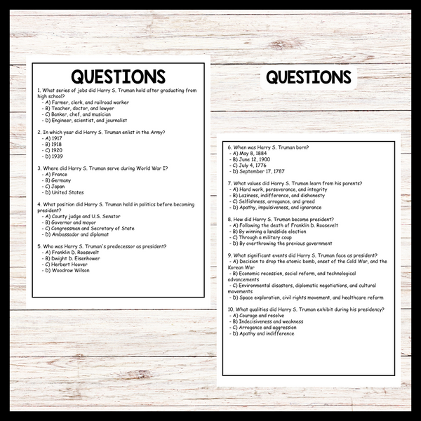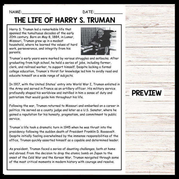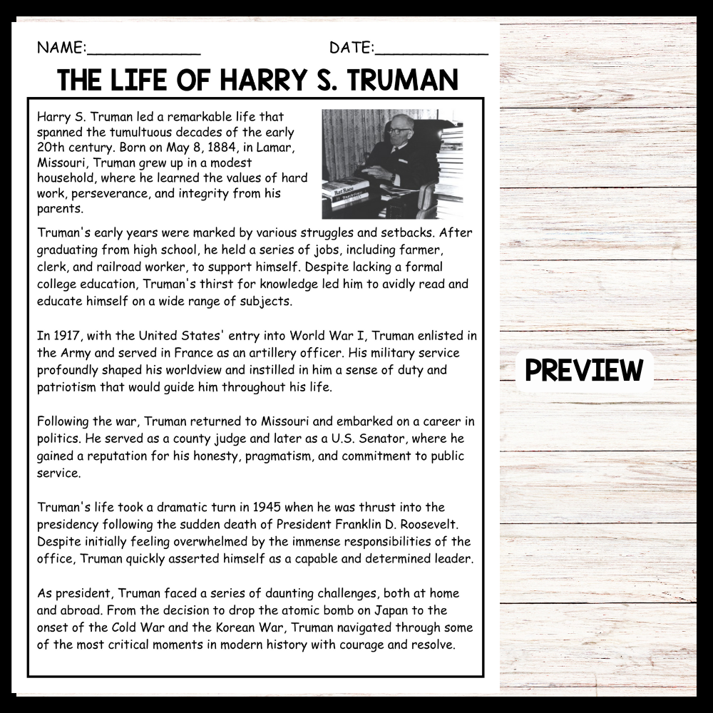 - "THE LIFE OF HARRY S. TRUMAN" TRUMAN DAY Reading Comprehension