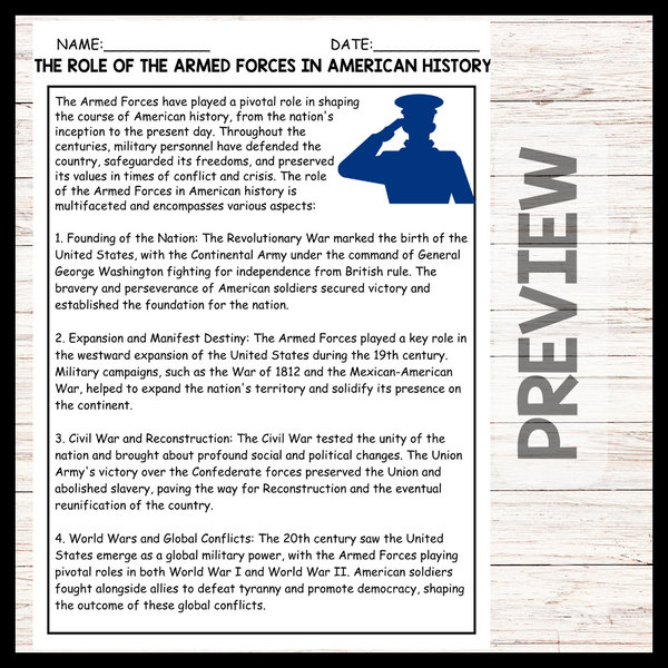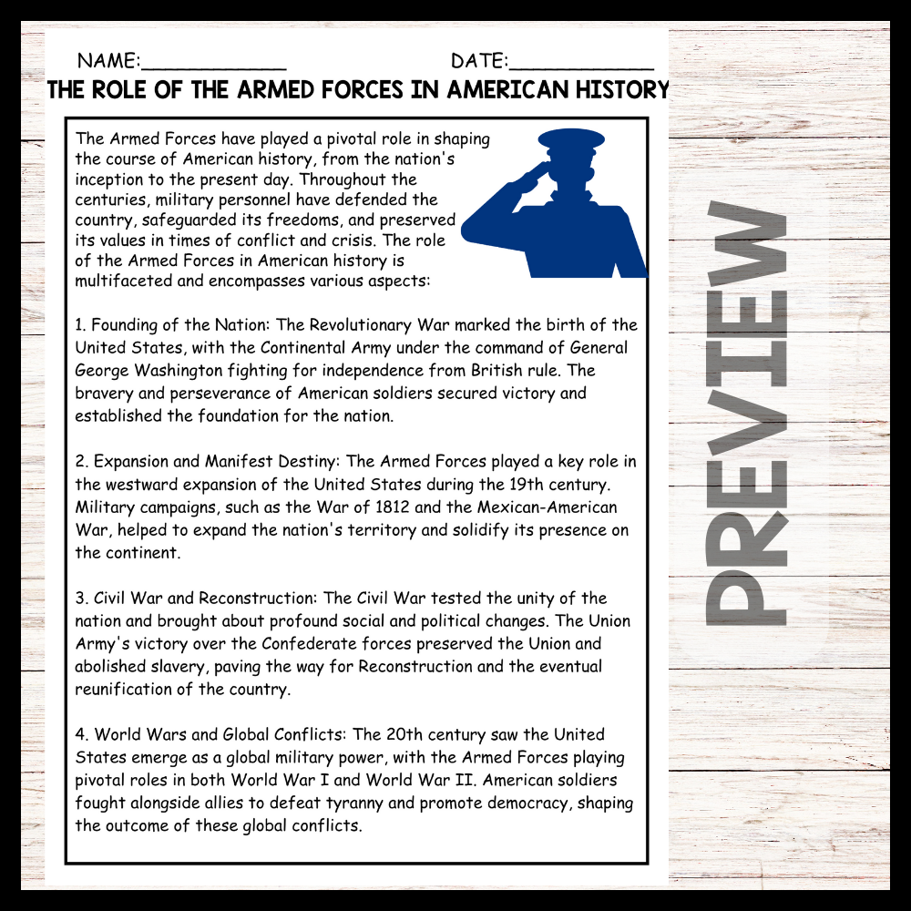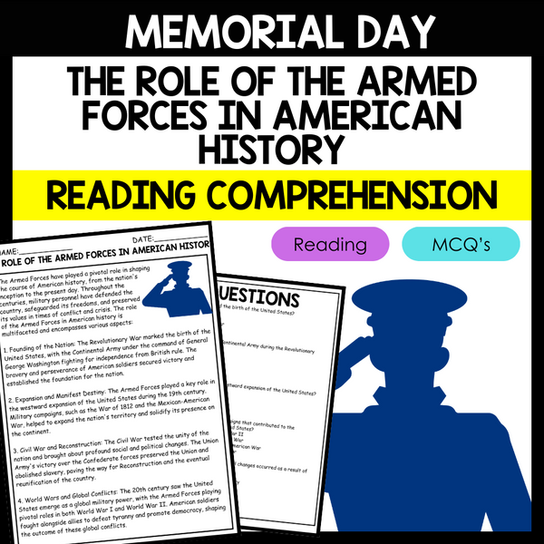 - "THE ROLE OF THE ARMED FORCES IN AMERICAN HISTORY" MEMORIAL DAY Reading Comprehension