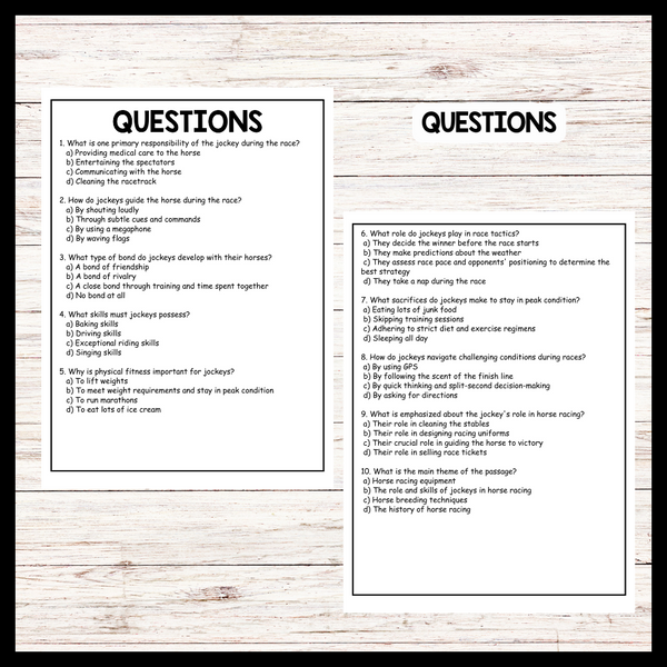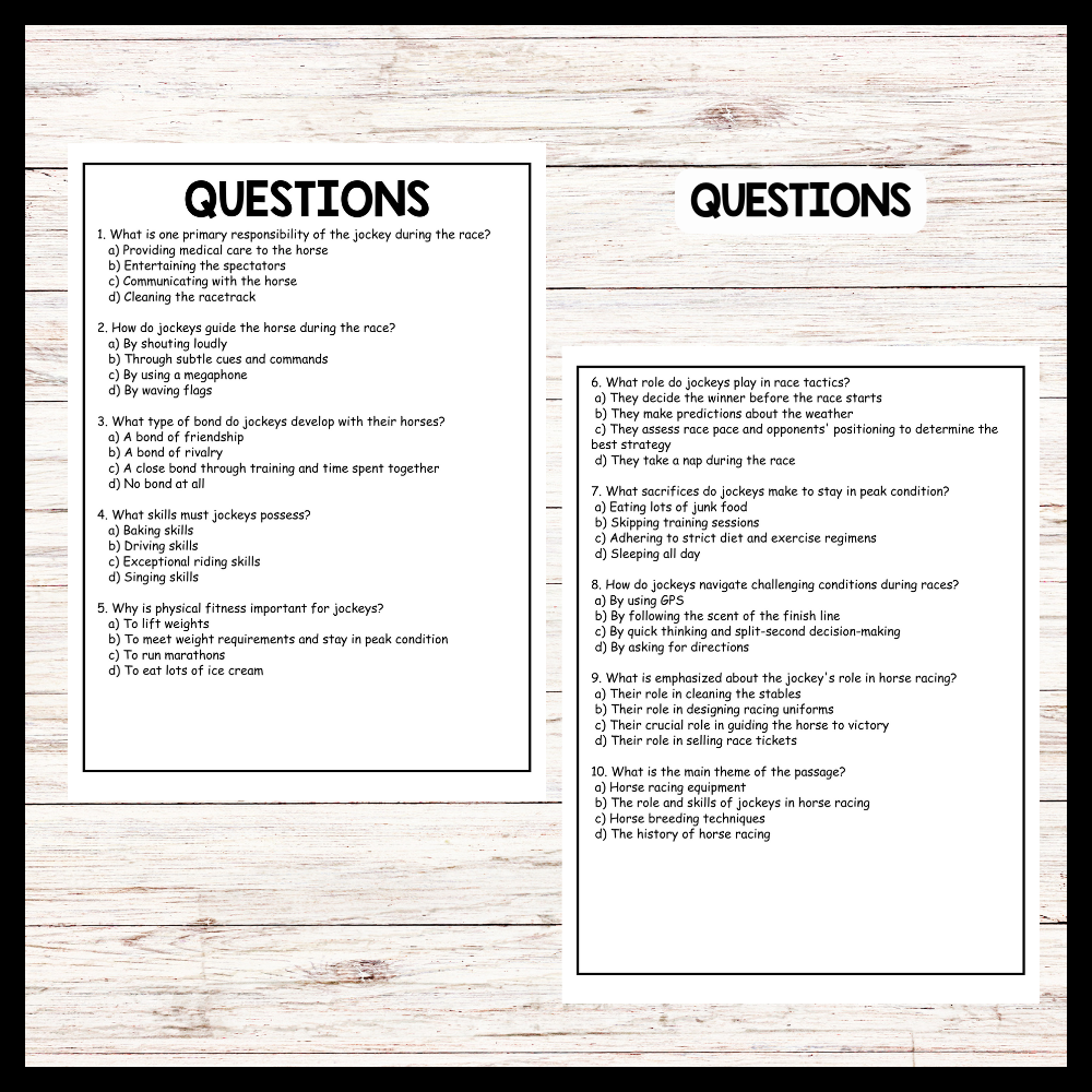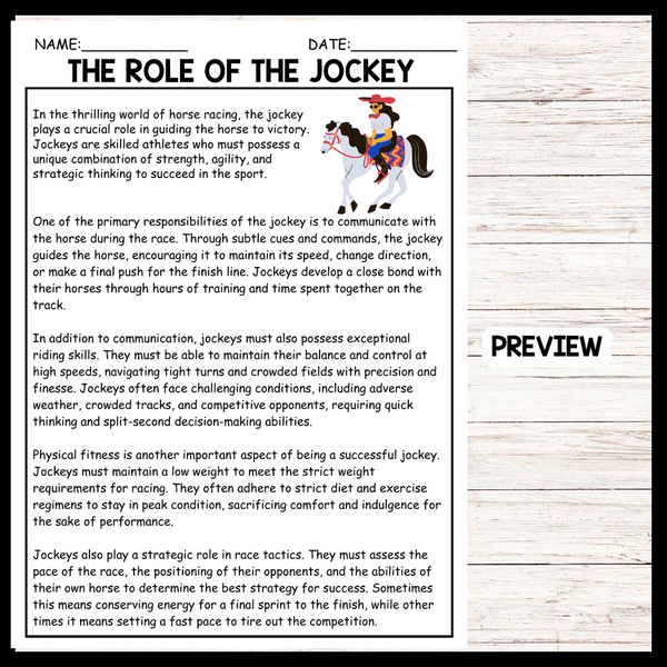 - "THE ROLE OF THE JOCKEY" KENTUCKY DERBY Reading Comprehension