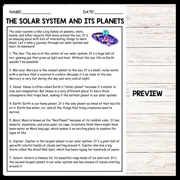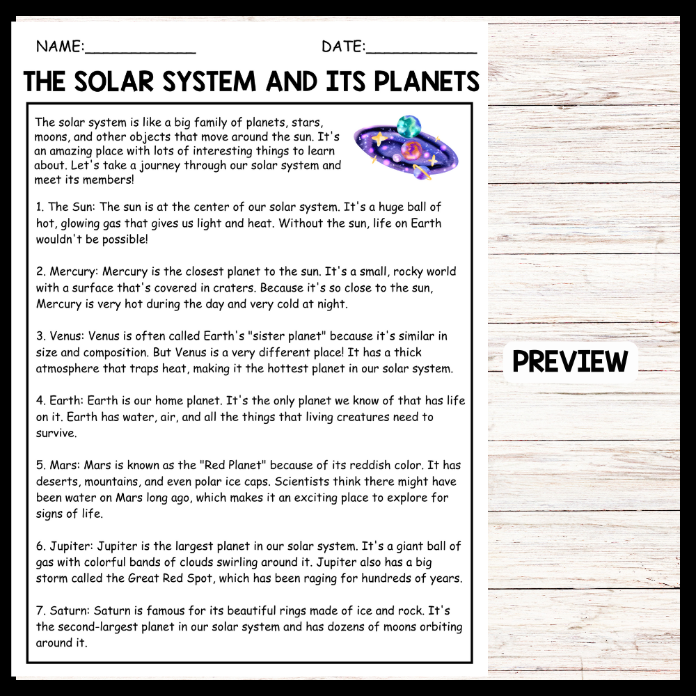 - "THE SOLAR SYSTEM AND ITS PLANETS" SPACE DAY Reading Comprehension