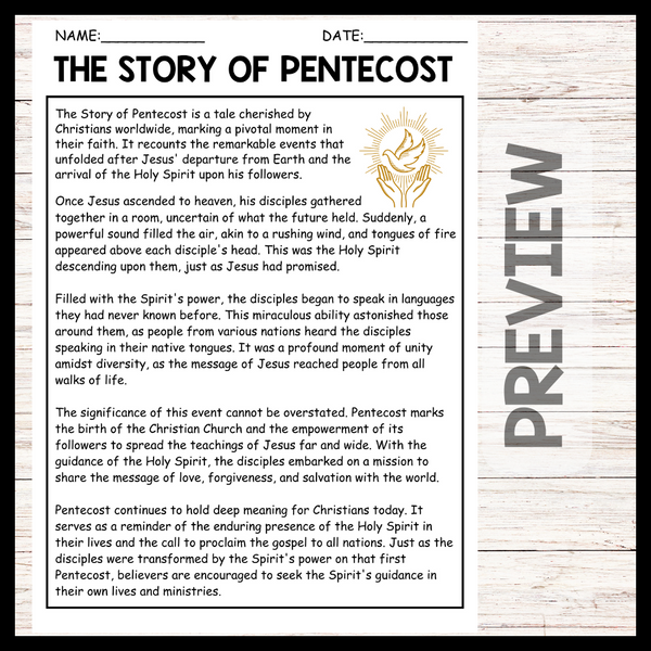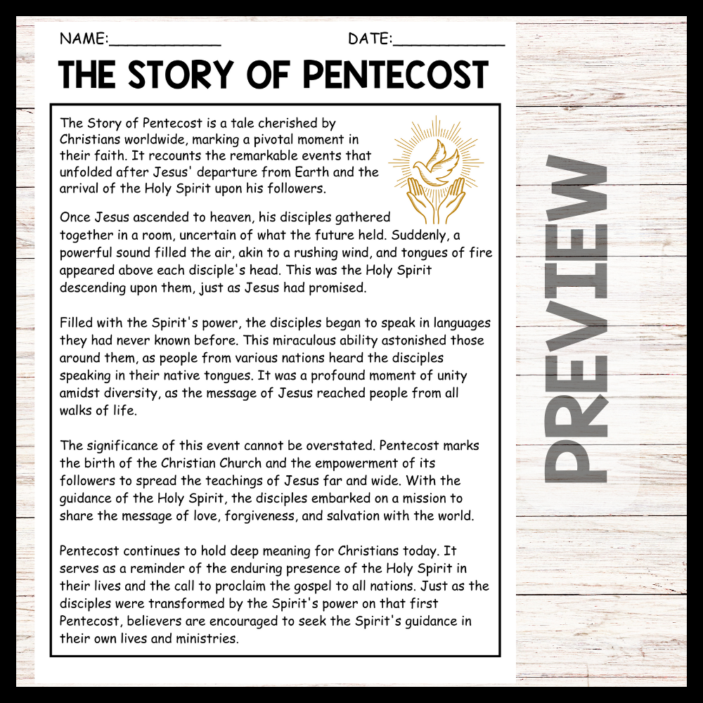 - "THE STORY OF PENTECOST" PENTECOST Reading Comprehension