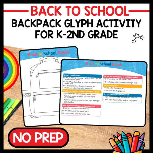 - Back to School Backpack Glyph Activity for K-2nd Grade