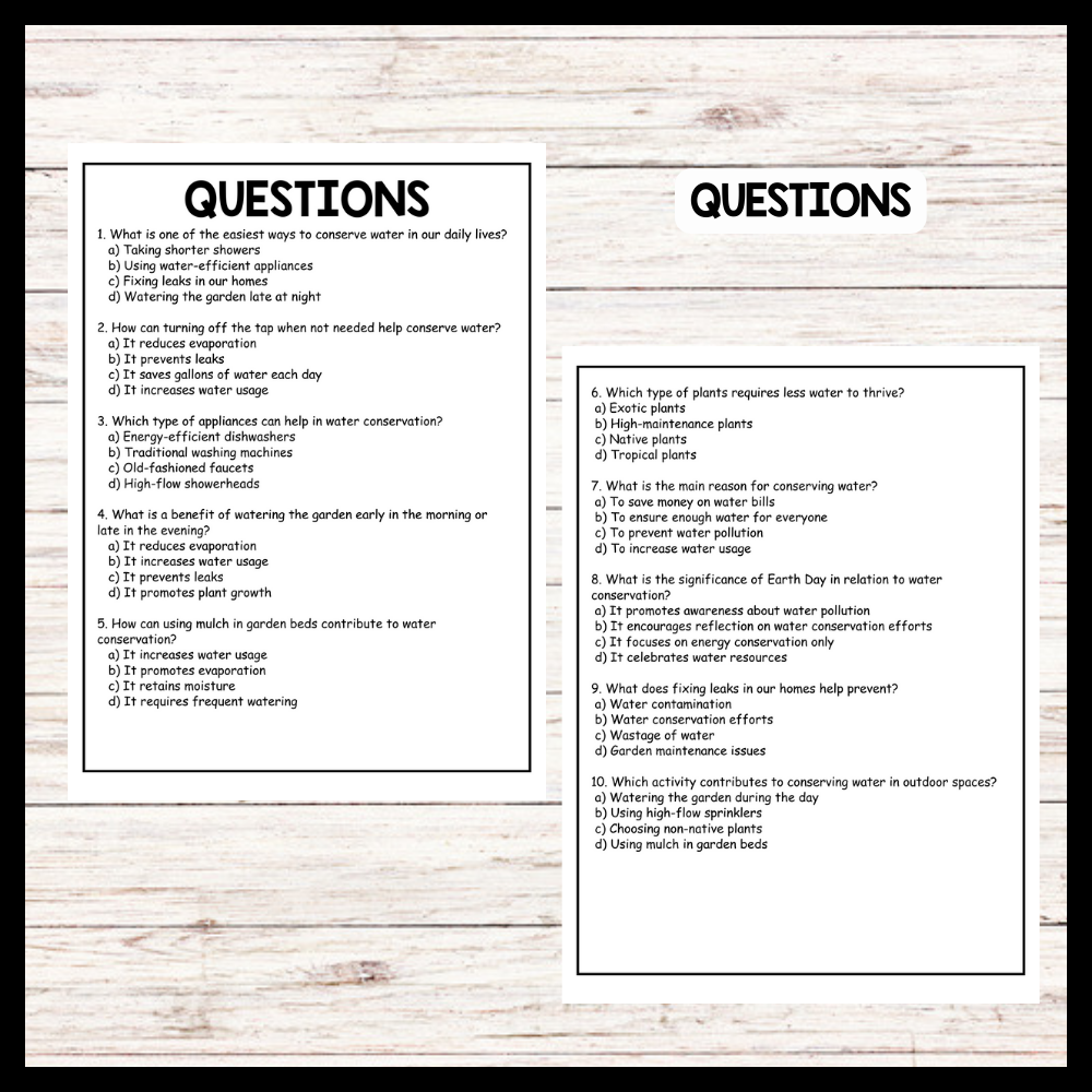 - "CONSERVING WATER" EARTH DAY Reading Comprehension
