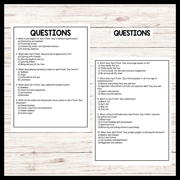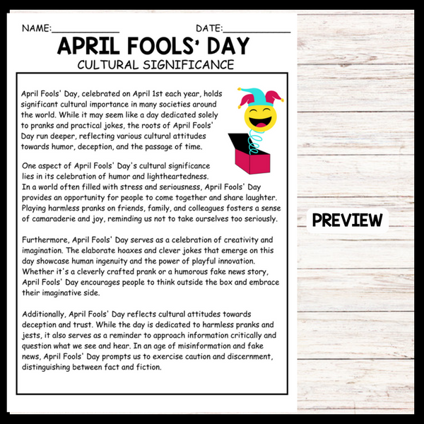 - "CULTURAL SIGNIFICANCE" APRIL FOOLS' DAY Reading Comprehension