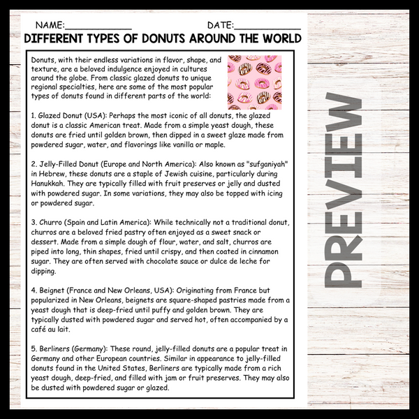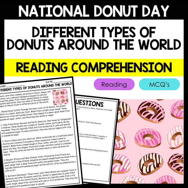 - "DIFFERENT TYPES OF DONUTS AROUND THE WORLD" NATIONAL DONUT DAY Reading Comprehension