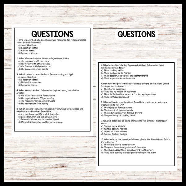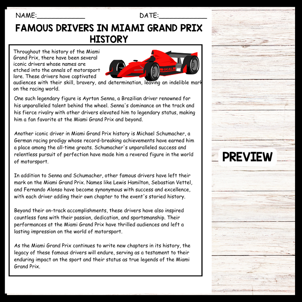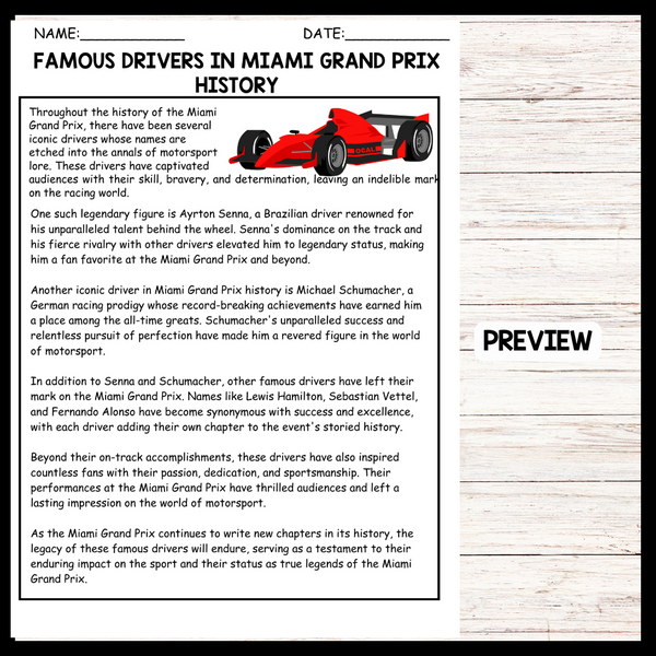 - "FAMOUS DRIVERS IN MIAMI GRAND PRIX HISTORY" MIAMI GRAND PRIX Reading Comprehension