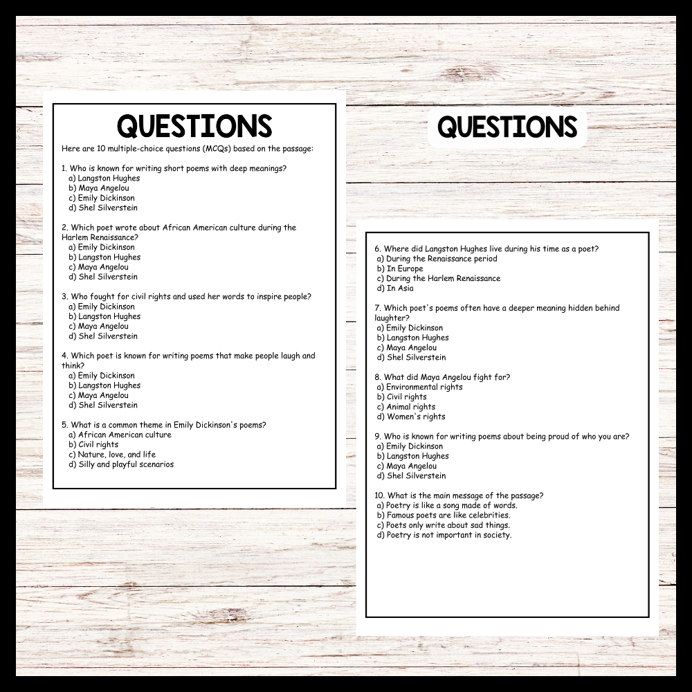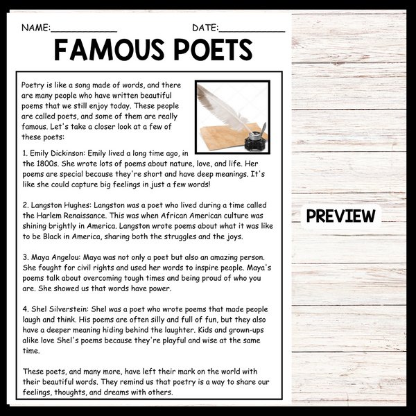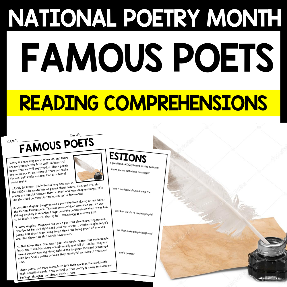 - "FAMOUS POETS" NATIONAL POETRY MONTH Reading Comprehension