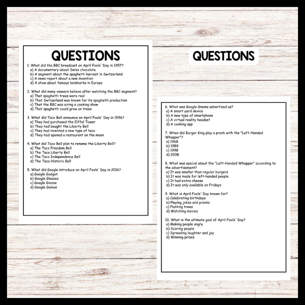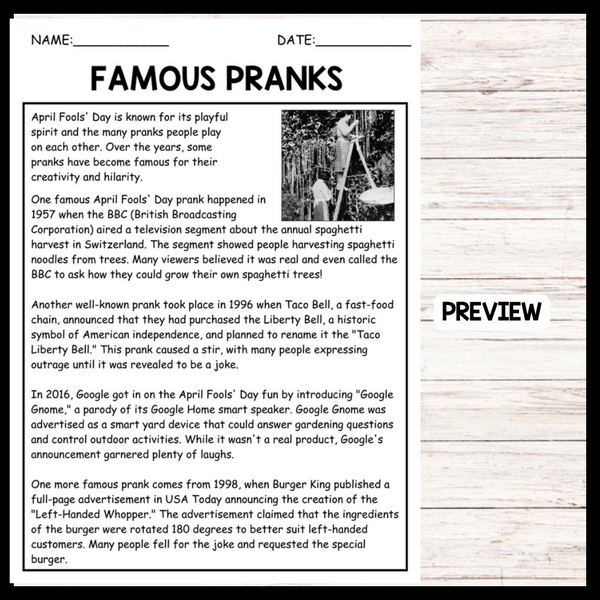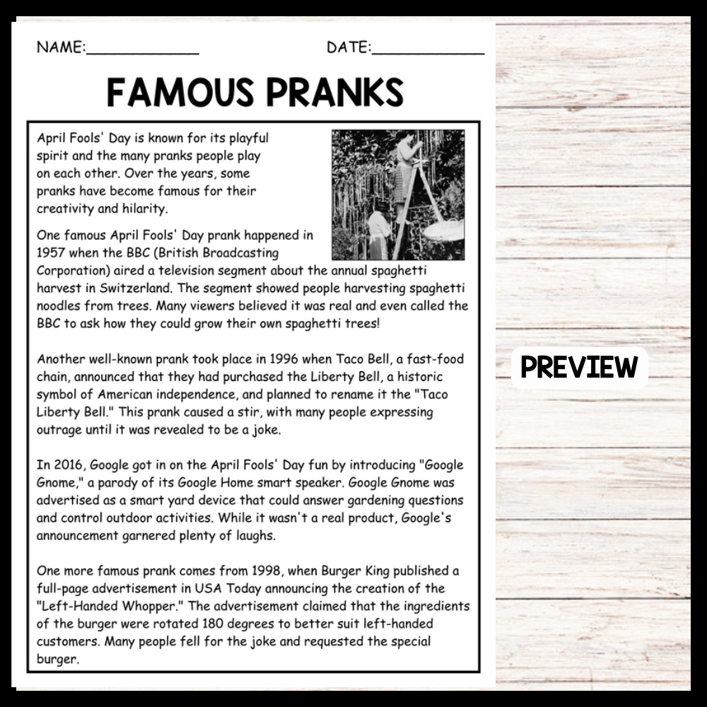 - "FAMOUS PRANKS" APRIL FOOLS' DAY Reading Comprehension