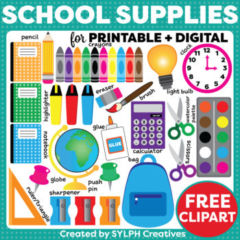 - FREE School Supplies ClipArt for Printable and Digital Resources