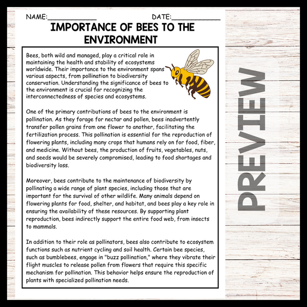 - "IMPORTANCE OF BEES TO THE ENVIRONMENT" WORLD BEE DAY Reading Comprehension