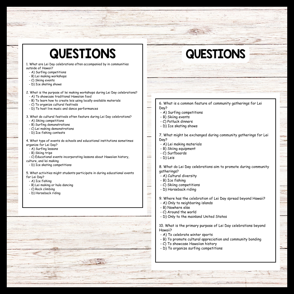 - "LEI DAY ACROSS THE WORLD" LEI DAY Reading Comprehension