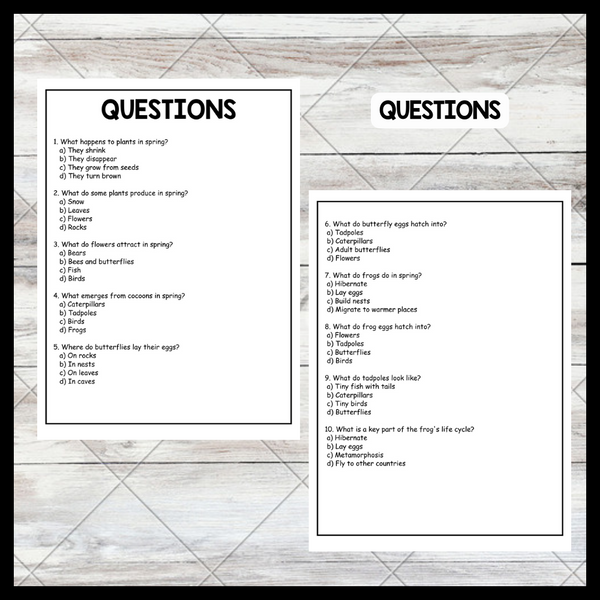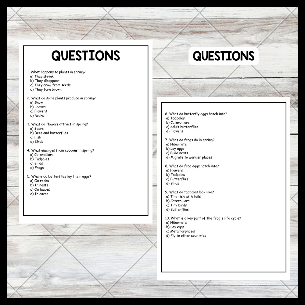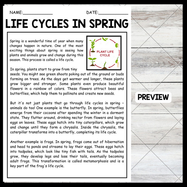 - "LIFE CYCLES IN SPRING" SPRING Reading Comprehension
