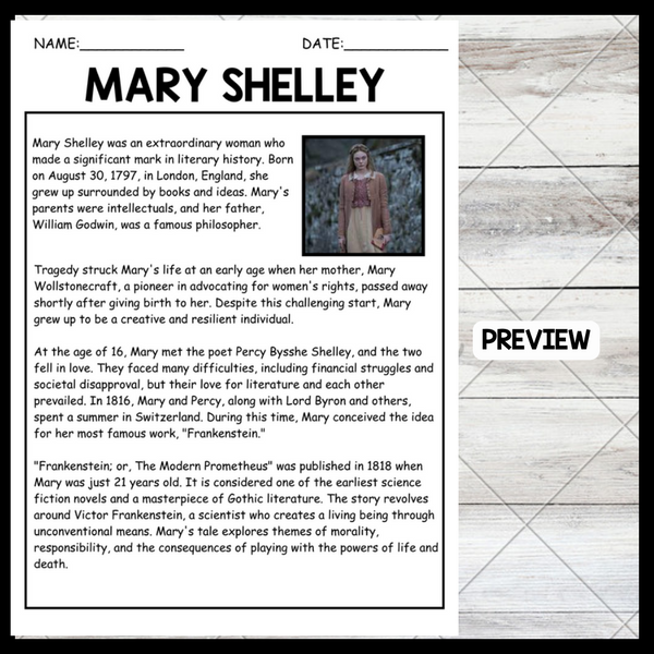 - "MARY SHELLEY" WOMEN’S HISTORY MONTH Reading Comprehension