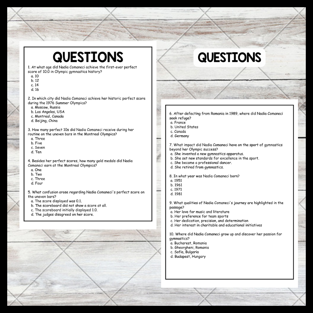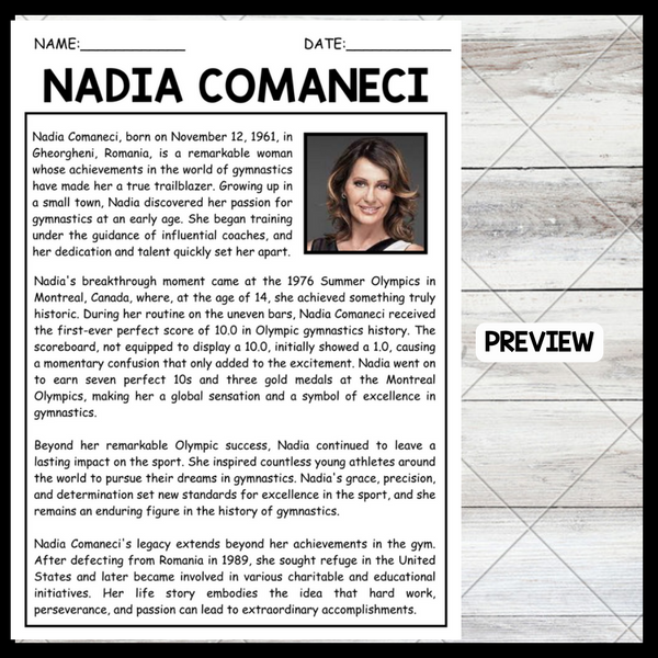 - "NADIA COMANECI" WOMEN’S HISTORY MONTH Reading Comprehension