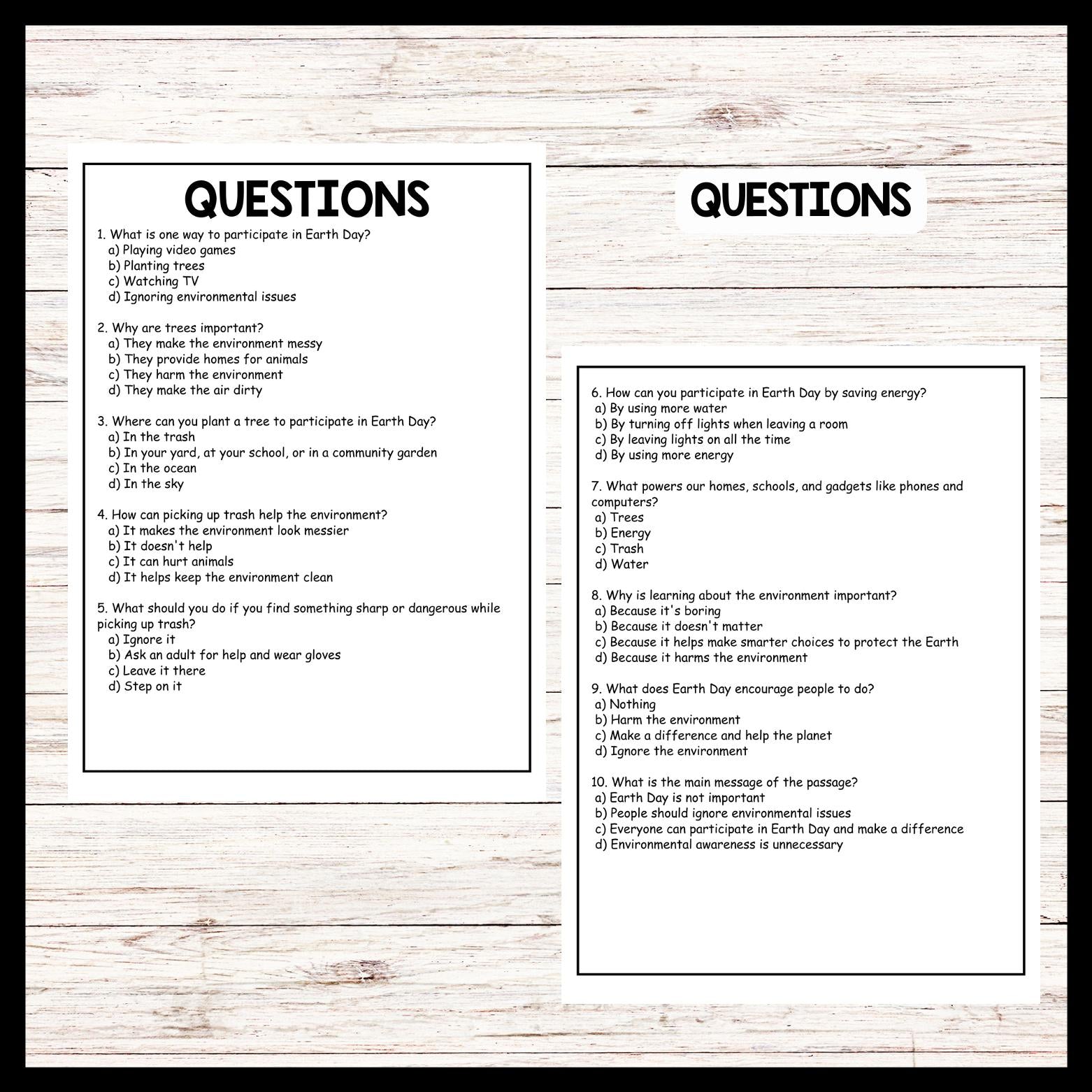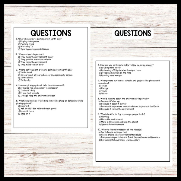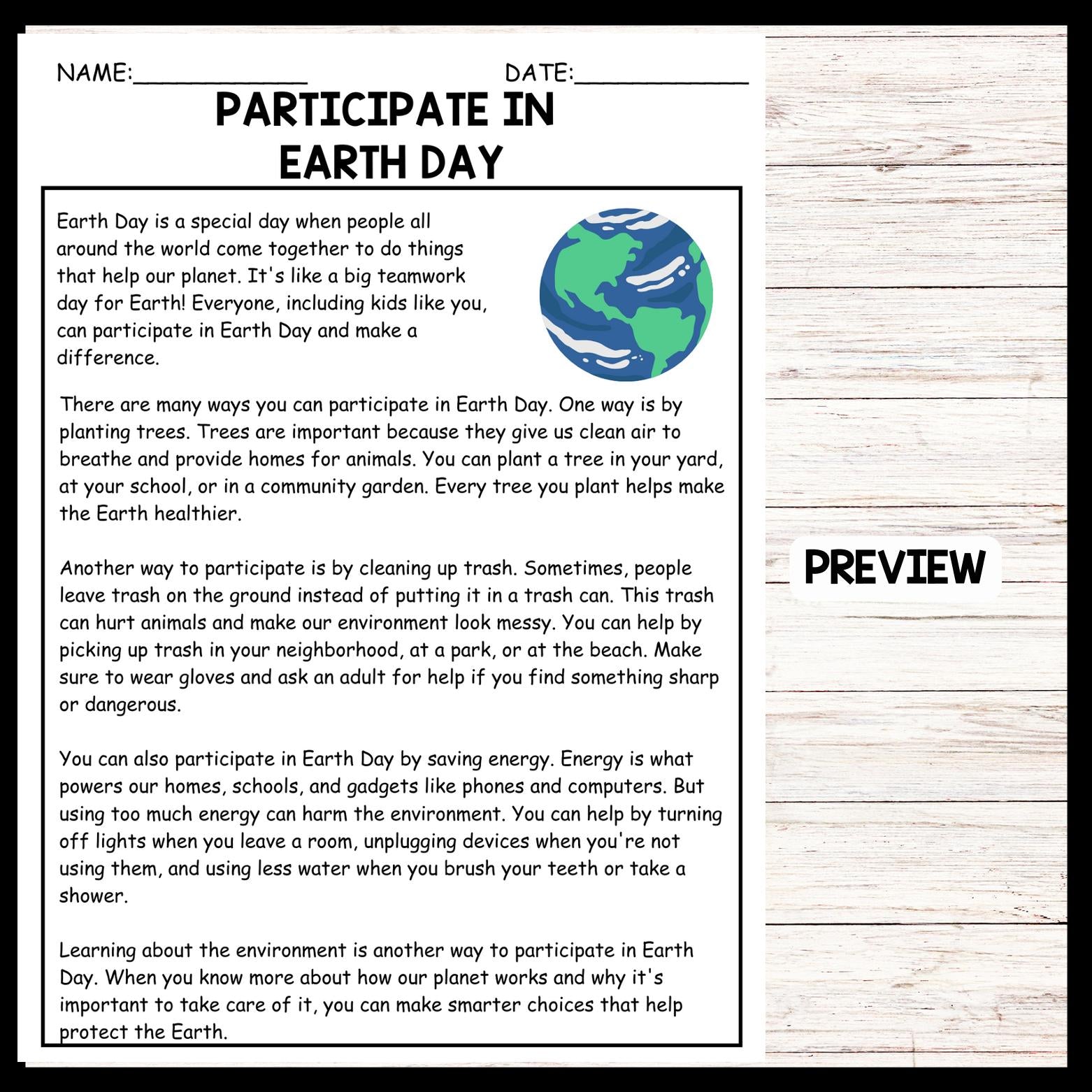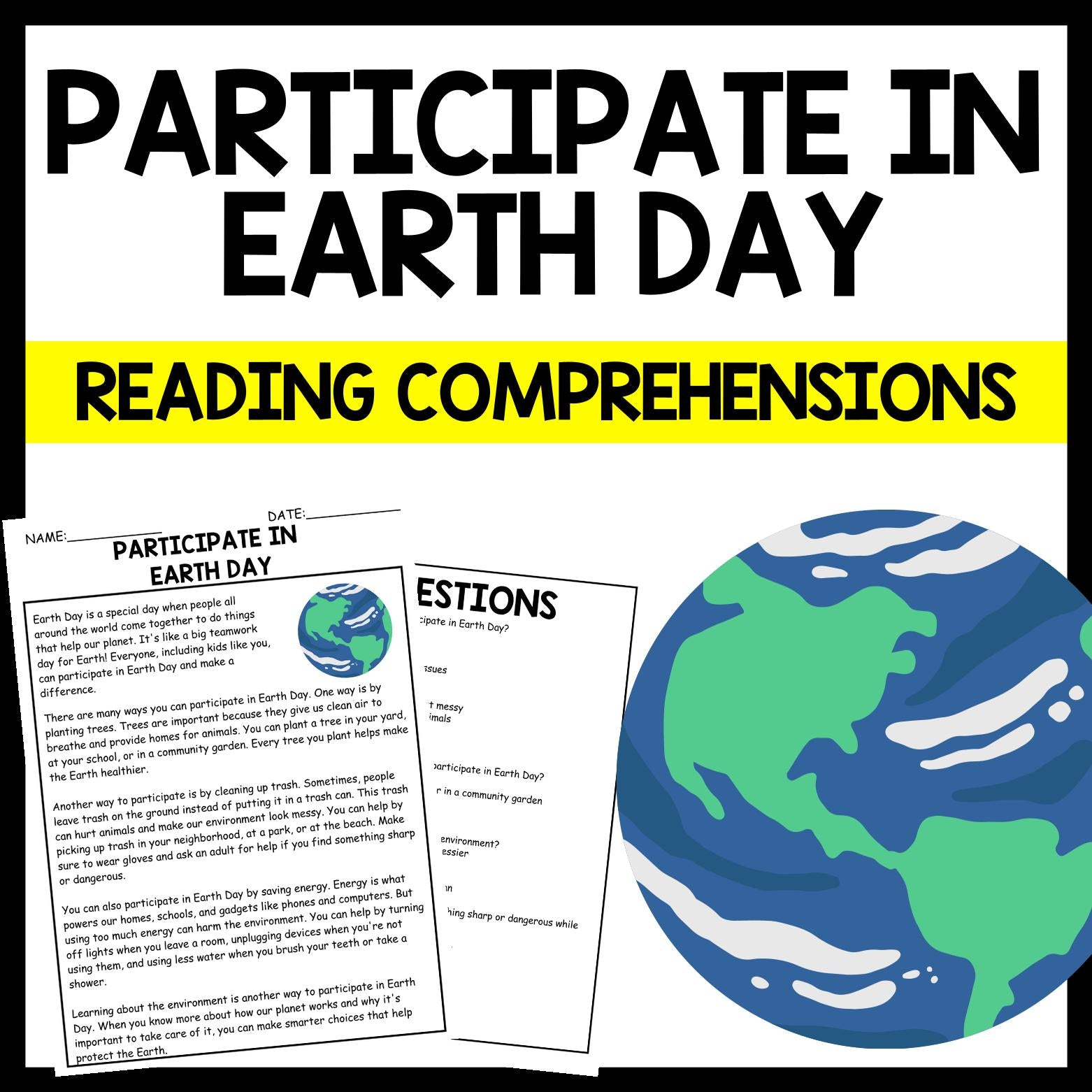 - "PARTICIPATE IN EARTH DAY" EARTH DAY Reading Comprehension