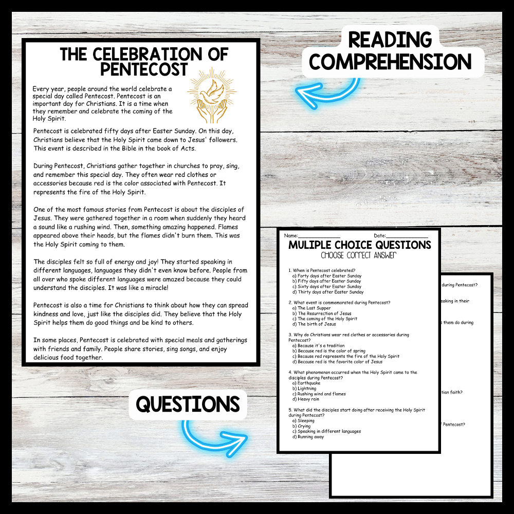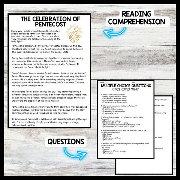 Pentecost - Celebration Reading comprehension Passage and Questions