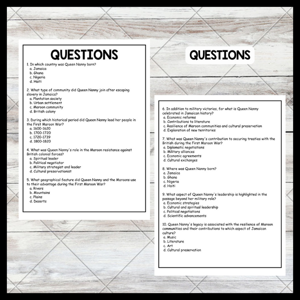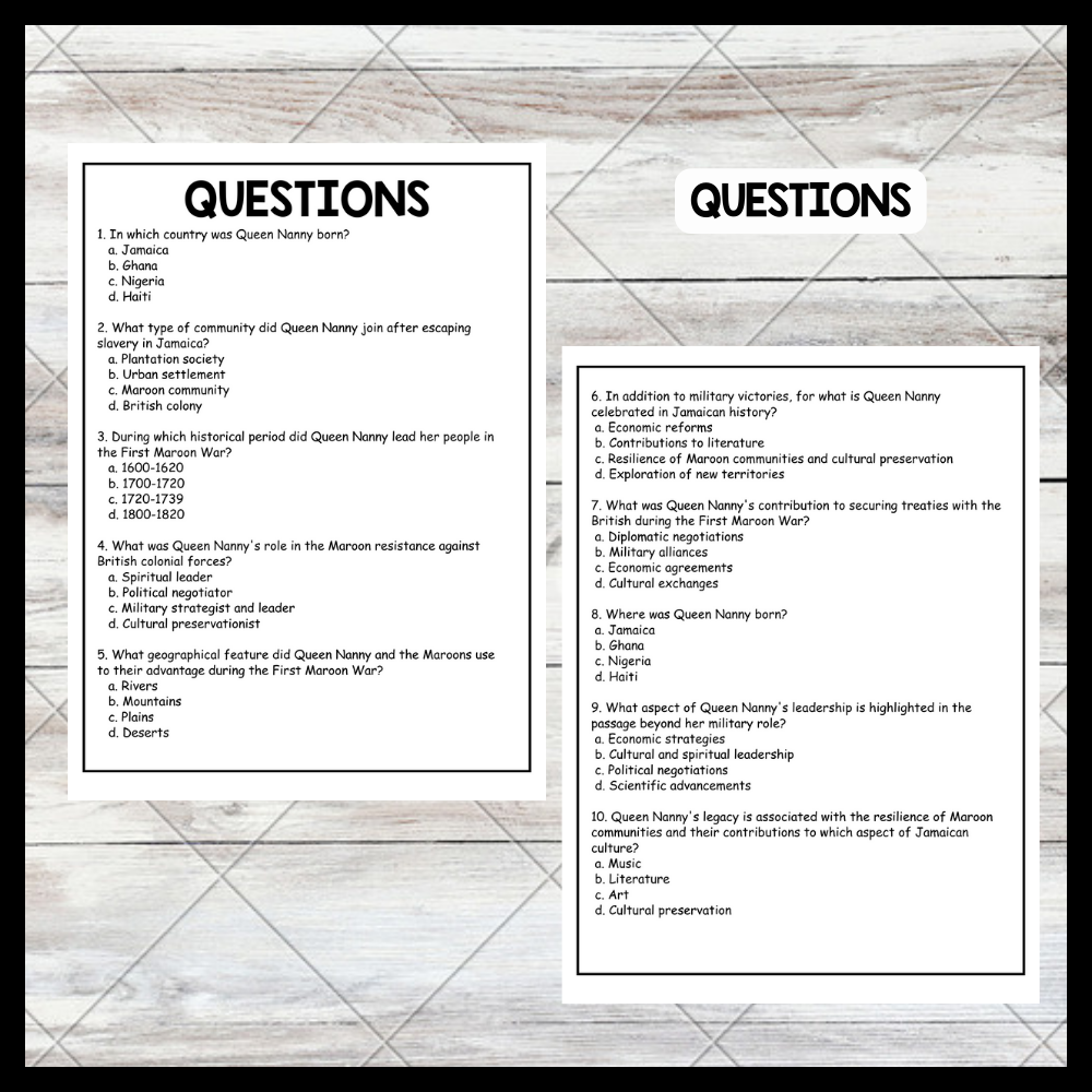 - "QUEEN NANNY" WOMEN’S HISTORY MONTH Reading Comprehension