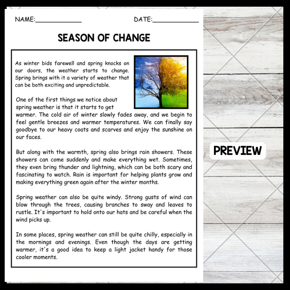 - "SEASON OF CHANGE" Spring Reading Comprehension