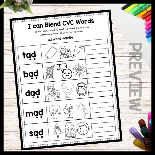Practice blending short A CVC words with our helpful sheets! Improve your child's reading skills while having fun. No need to stress about finding the perfect resources, we've got you covered. Start building a strong foundation with these approachable, friendly and concise practice sheets now!