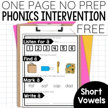 - Short Vowels Phonics Intervention Worksheet Activities One Page No Prep
