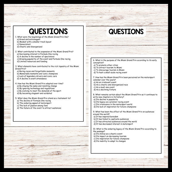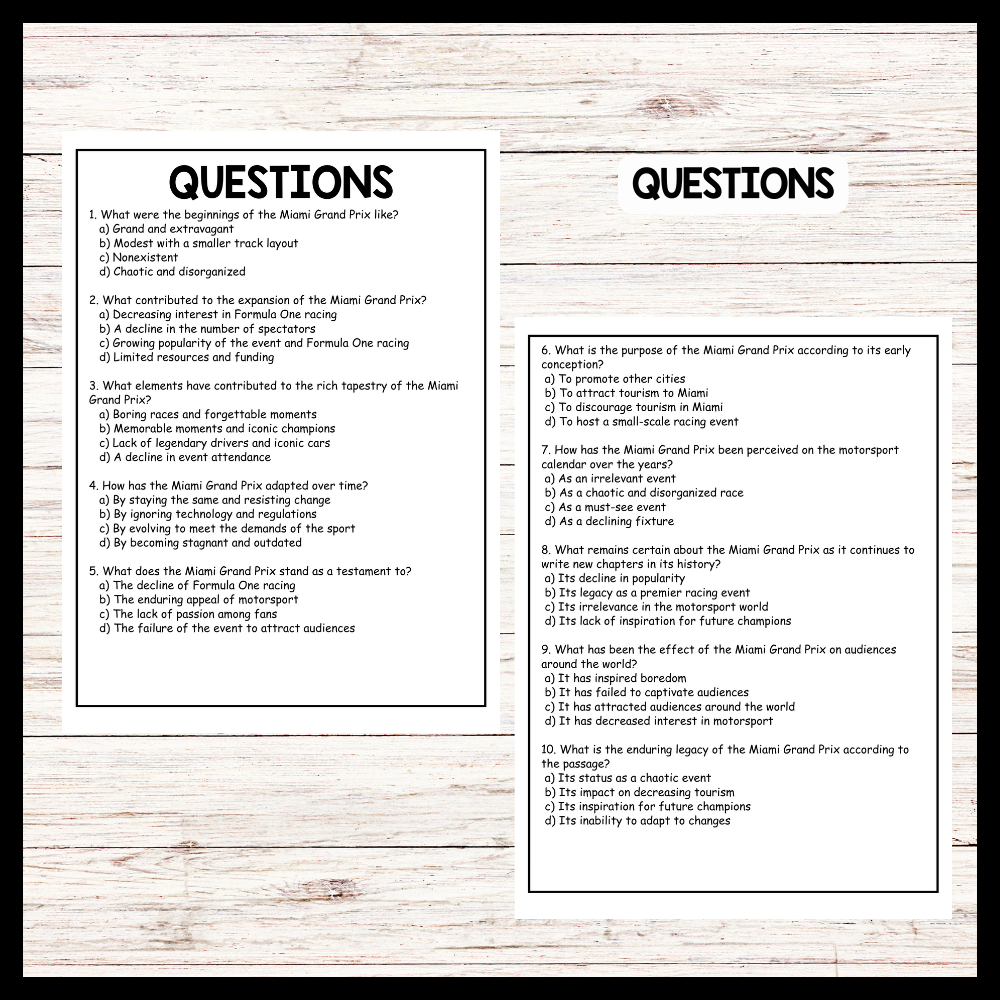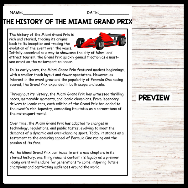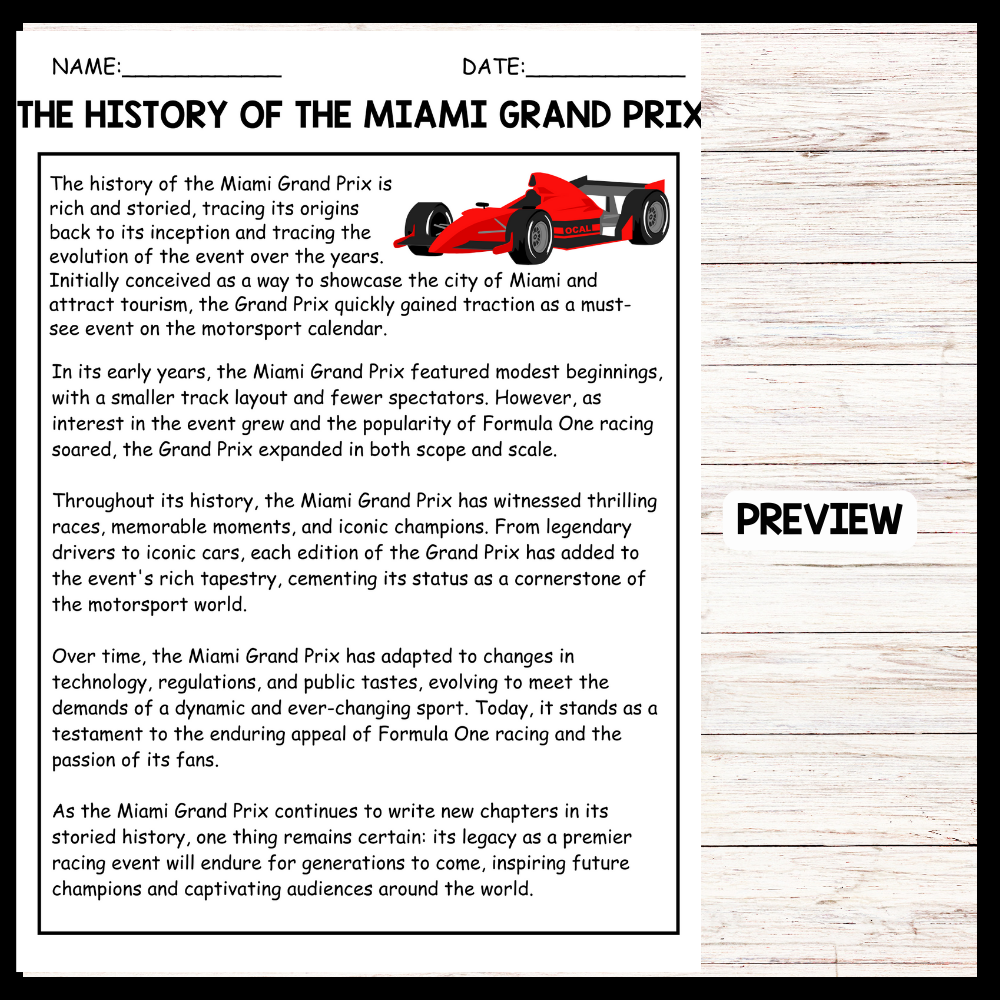- "THE HISTORY OF THE MIAMI GRAND PRIX" MIAMI GRAND PRIX Reading Comprehension