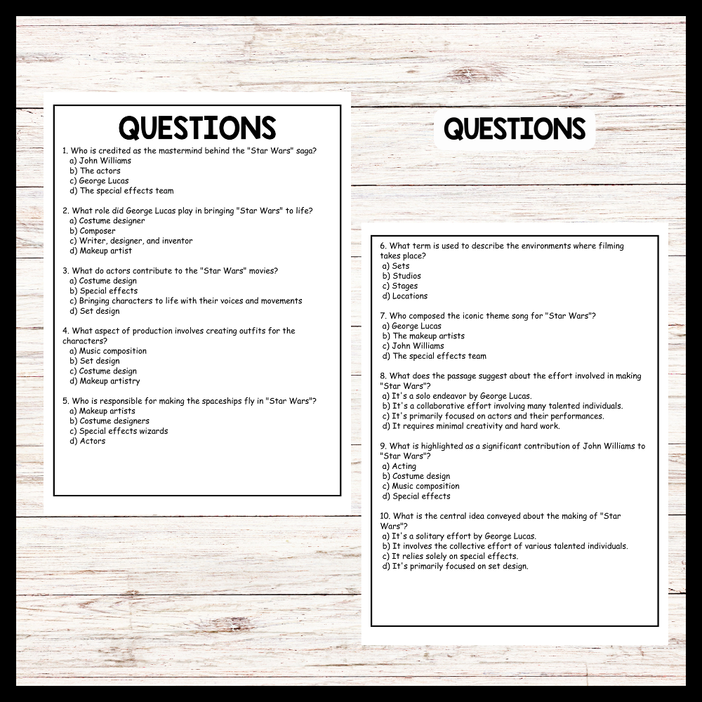 - "THE MAKING OF THE STAR WARS SAGA" MAY THE FOURTH Reading Comprehension