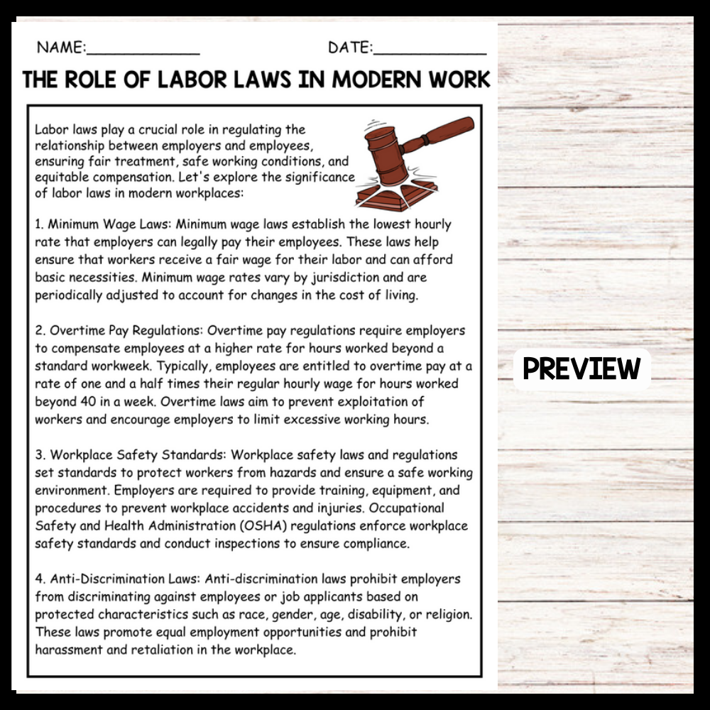 - "THE ROLE OF LABOR LAWS IN MODERN WORK" LABOR Day Reading Comprehension