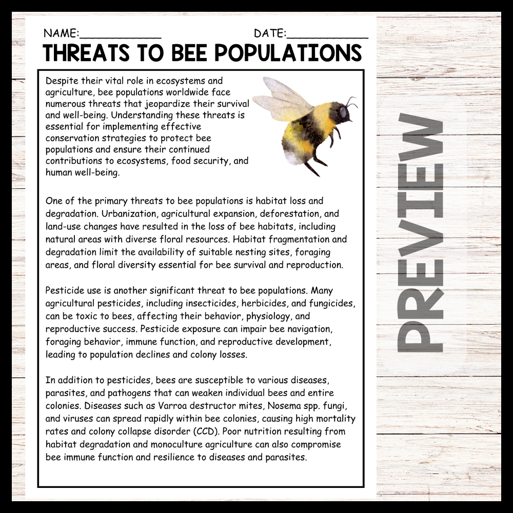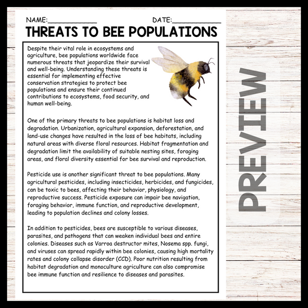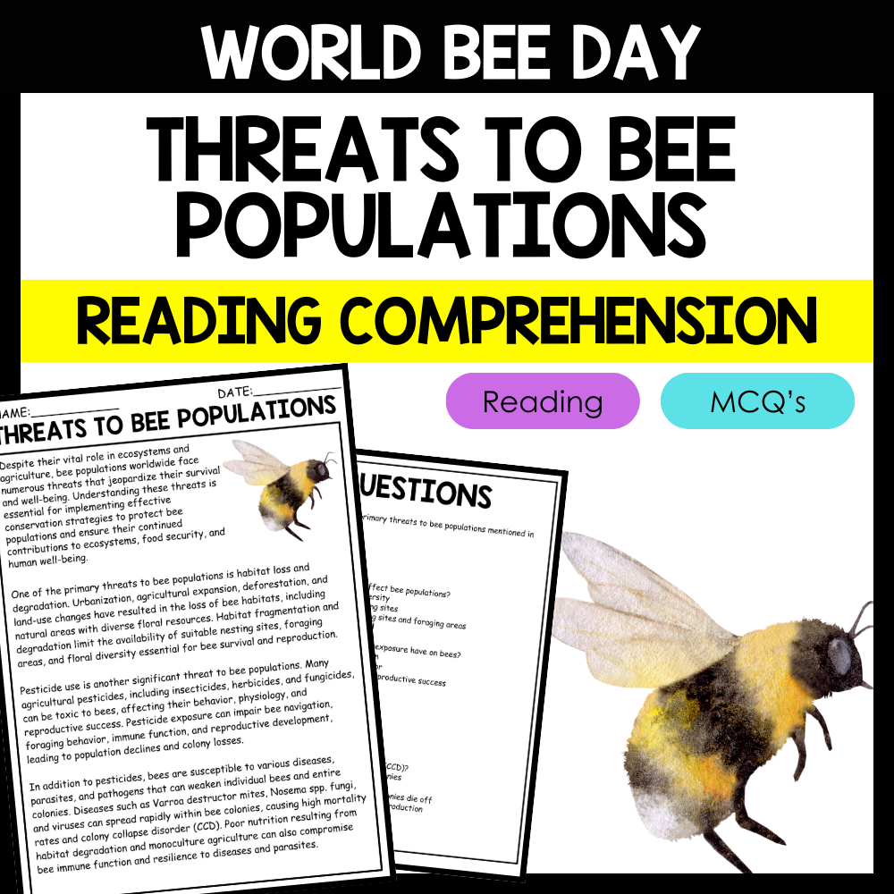 - "THREATS TO BEE POPULATIONS" WORLD BEE DAY Reading Comprehension