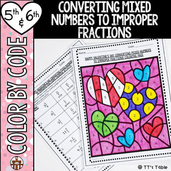 - Valentine's Day Math | Coloring | Converting Mixed Numbers to Improper Fractions