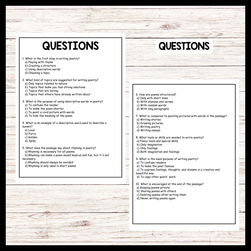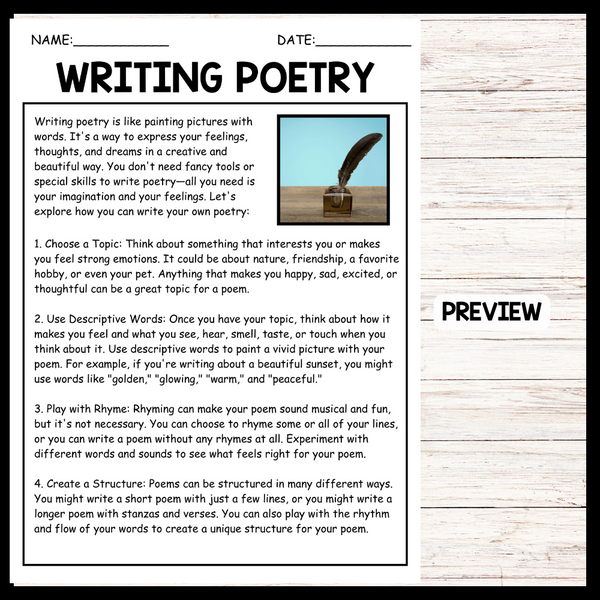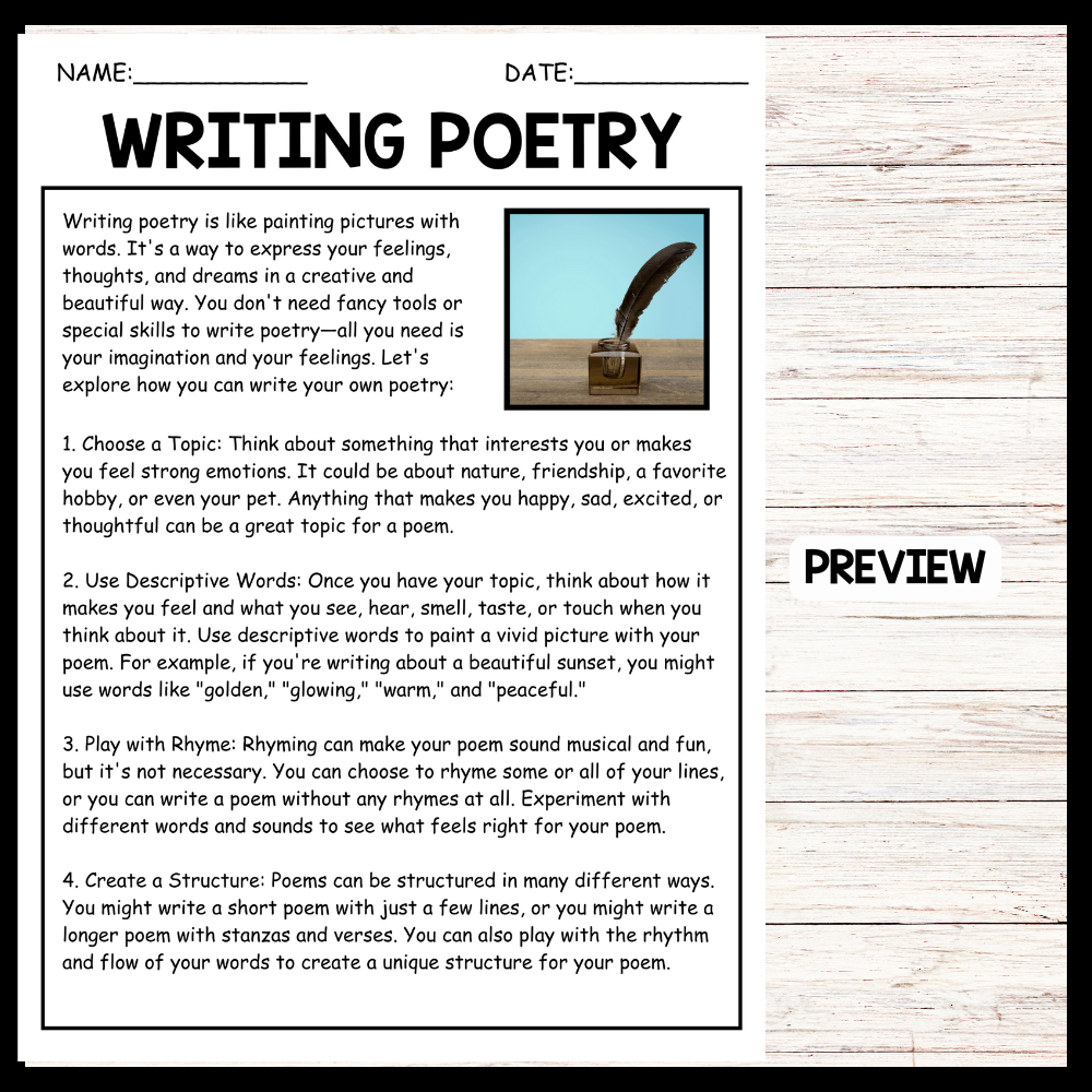 - "WRITING POETRY" NATIONAL POETRY MONTH Reading Comprehension